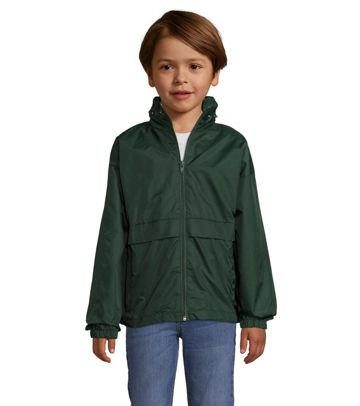 Dětská větrovka s kapucí, která jde ukrýt do límce. Bunda má dvě boční kapsy a dvě vnitřní kapsy na zip. Skládací systém „In bag“ s pružnými manžetami umožňuje bundu lehce složit do malého rozměru. Povrch bundy je vodoodpudivý.