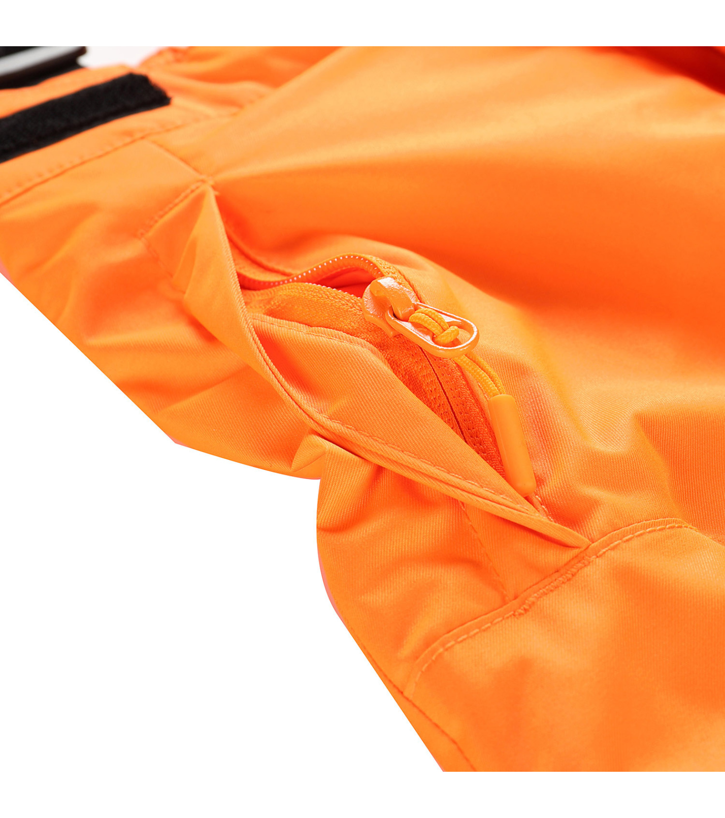 Kalhoty jsou vybaveny dvěma předními kapsami se zipy pro bezpečné uložení drobností. Nastavitelné a odepínatelné šle zajišťují pohodlné nošení a snadné přizpůsobení podle potřeby. Delší taháčky na zipy umožňují snadnou manipulaci i v rukavicích. Reflexní potisk na boku a zadním dílu zvyšuje viditelnost dítěte za špatného počasí, čímž přispívá k jeho bezpečnosti. Středně hřejivá výplň dělá z kalhot ideální druhou izolační vrstvu pro lyžování, snowboarding a další zimní aktivity.