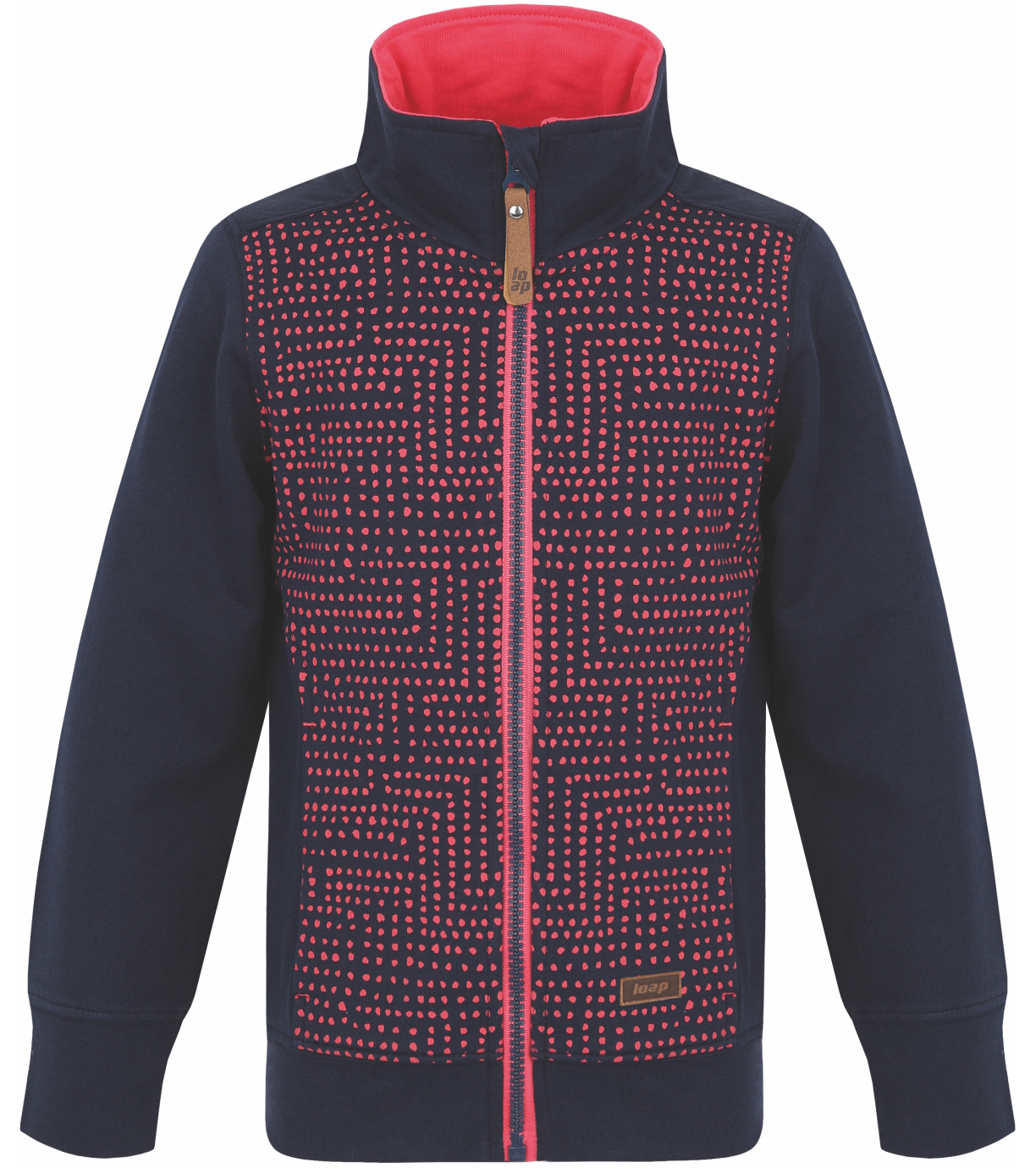 Bavlněná dívčí mikina na zip Loap DIFENA má klasický střih se stojáčkem a dvěma bočními kapsami. Kostěný zip má na horním konci praktické krytí, které chrání bradu před chladem a příp. poraněním. Vpředu tuto dívčí mikinu zdobí kvalitní matný potisk, který je příjemný na dotek. Vaší slečně bude v průběhu celého roku slušet ve škole, doma i ve volném čase. Hodí se k džínům, legínám i teplákům. Stojáček. Kostěný zip s krytím brady. Dvě boční kapsy. Potisk příjemný na dotek.