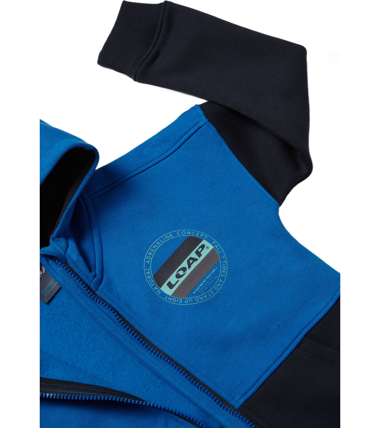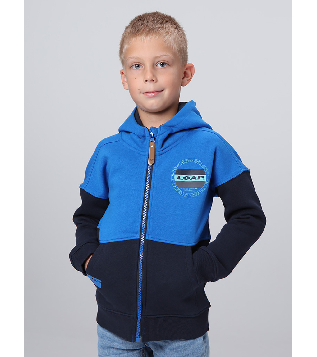 Chlapecká mikina Loap DIZAR je stylovou, všestranně využitelnou mikinou pro celoroční nošení. Doprovodí malé neposedy do školy, na výlet, spolehlivým parťákem je i při dovádění na hřišti. Bavlna zaručuje pohodlí a příjemné nošení, příměs polyesteru dodává mikině praktické vlastnosti jako nižší mačkavost a celkově snazší údržbu. Klasický střih ozvláštňují spadlá ramena a stylová kapuce. Rukávy i spodní okraj jsou zakončeny do nápletu. S celorozepínáním na kostěný zip se mikina snadno obléká a krytí na konci zipu u brady brání nepříjemnému skřípnutí kůže. Mikinu oživuje potisk na hrudi, nechybí ani dvě kapsy na klučičí poklady.