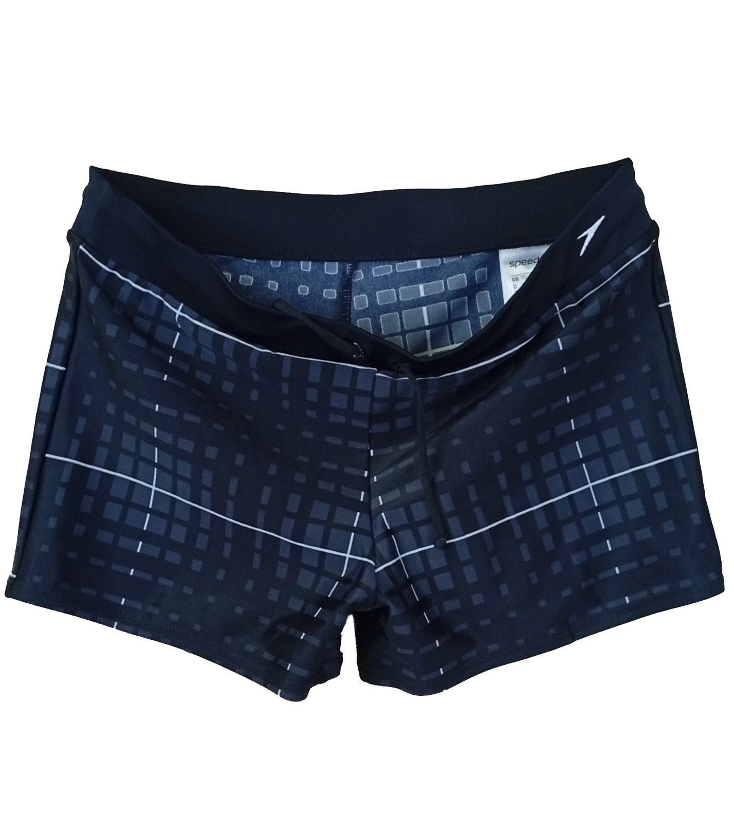 Chlapecké plavky - boxerky značky Speedo v černé barvě se zajímavým geometrickým vzorem v tmavě modré barvě. Moderní střih se šňůrkou v pase umožňuje individuální utažení a pohodlné nošení. Materiál je rychleschnoucí, odolný vůči chloru a dobře drží tvar i při pravidelném používání. Tyto plavky kombinují sportovní vzhled s originálním designem, díky čemuž se hodí jak na tréninky, tak na rekreační plavání.