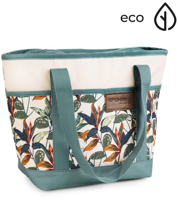 Termo taška z ekologických materiálu Spokey EKO SIMPLY je velmi lehká, praktická, a zároveň umožnuje přenášet velké množství věcí. Silné a odolné ramenní popruhy umožnují přenášet až 10 kg! Model EKO SIMPLY má velkou vnitřní kapsu uzavíratelnou zipem o objemu přibližně 8 l. Zvenčí se nachází menší kapsa. Můžete do ní uložit potřebné drobnosti, které chcete mít ihned po ruce, jako je telefon, peněženka nebo klíče.