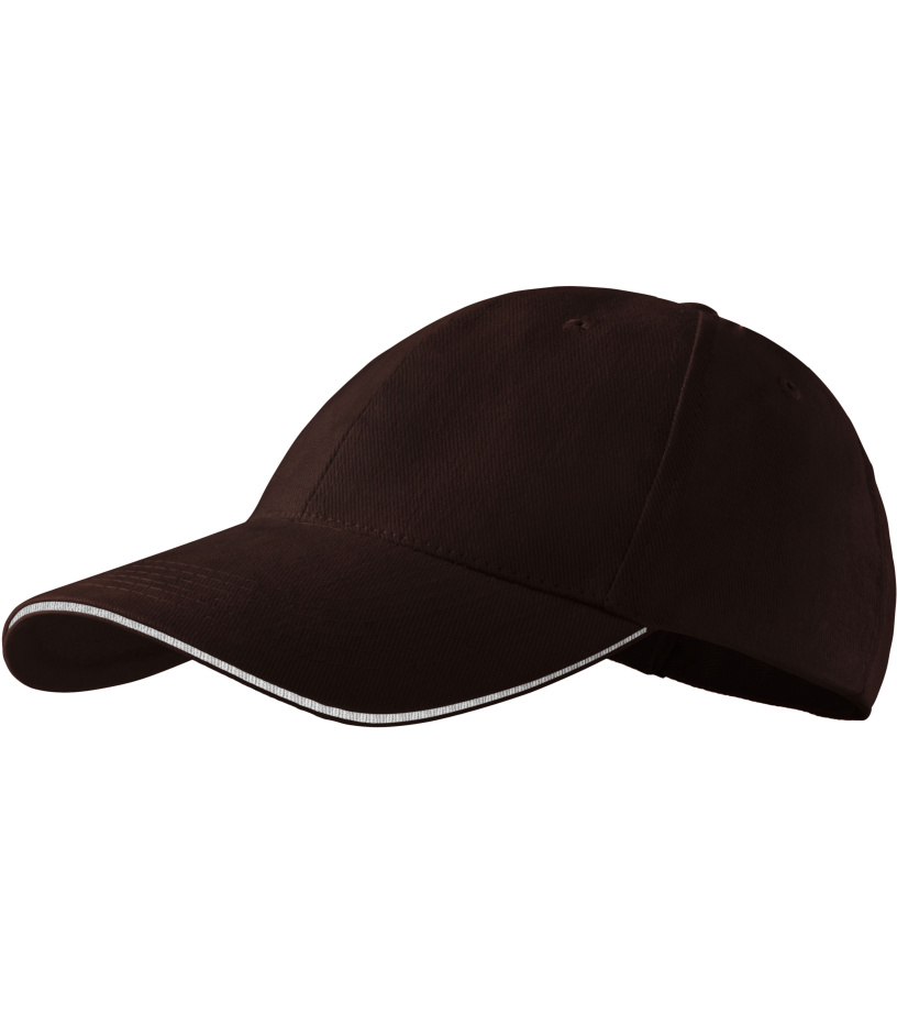 Kšiltovka šestipanelového střihu s prošívaným, lehce prohnutým kšiltem s kontrastním proužkem vhodná pro výšivku a potisk má vyztužené 2 přední panely, obsité větrací otvory, potící pásku a velikost nastavitelnou mosazným klipem.