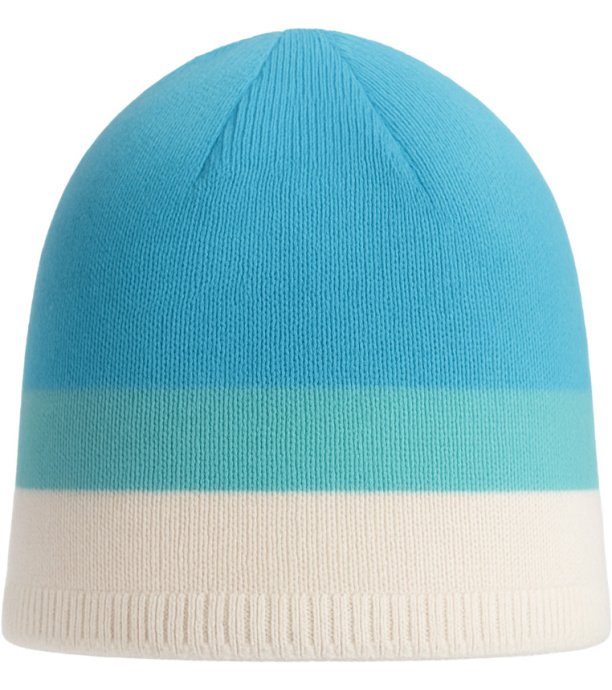 Lehká pletená čepice v kombinaci světle modré, tyrkysové a bílé barvy. Vyrobena z měkkého, příjemného materiálu, který poskytuje teplo a komfort při nošení. Díky jednoduchému designu a pružnému lemu dobře sedí na hlavě. Skvělá volba pro zimní sporty i každodenní nošení.