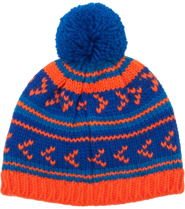 Hřejivá pletená zimní čepice s výrazným barevným vzorem, která zaujme na první pohled. Velká bambule na vrchu podtrhuje zimní styl a dodává čepici moderní nádech.