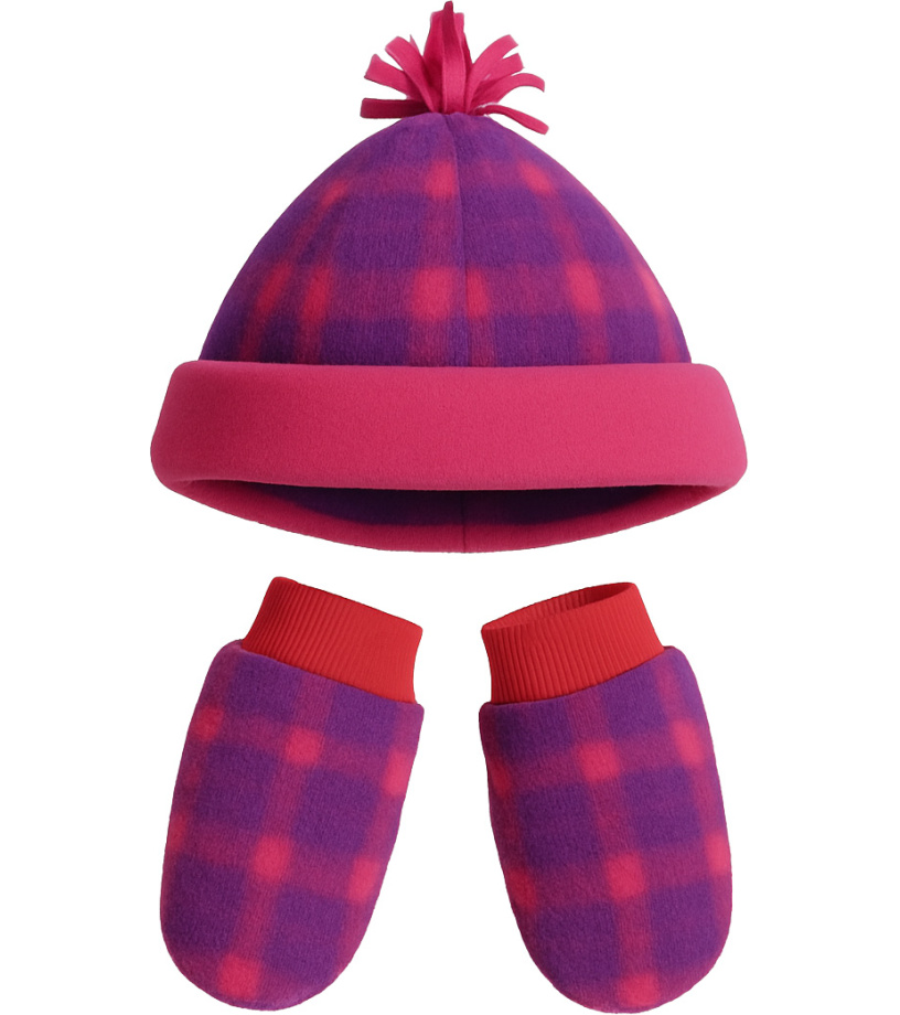 Dětská sada obsahuje čepici a palčáky s kostkovaným vzorem. Čepice s ozdobným střapcem a ohrnutým lemem příjemně hřeje a skvěle padne. Palčáky s pružnými manžetami dobře drží na rukou a chrání před zimou. Ideální pro chladné dny i zimní radovánky venku.