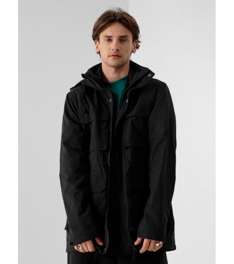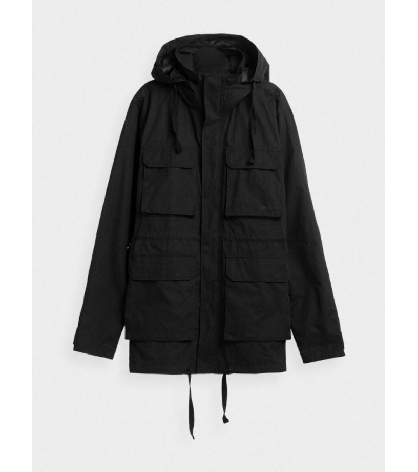 Přechodová pánská bunda. Přechodová bunda s možností regulace v pase. Vysoký límec a prostorná integrovaná kapuce se stahovacími šňůrkami. Technická konstrukce z matného materiálu s množstvím kapes a možností úprav, navíc s voděodolnou úpravou. Moderní střih se hodí do každé městské stylizace.