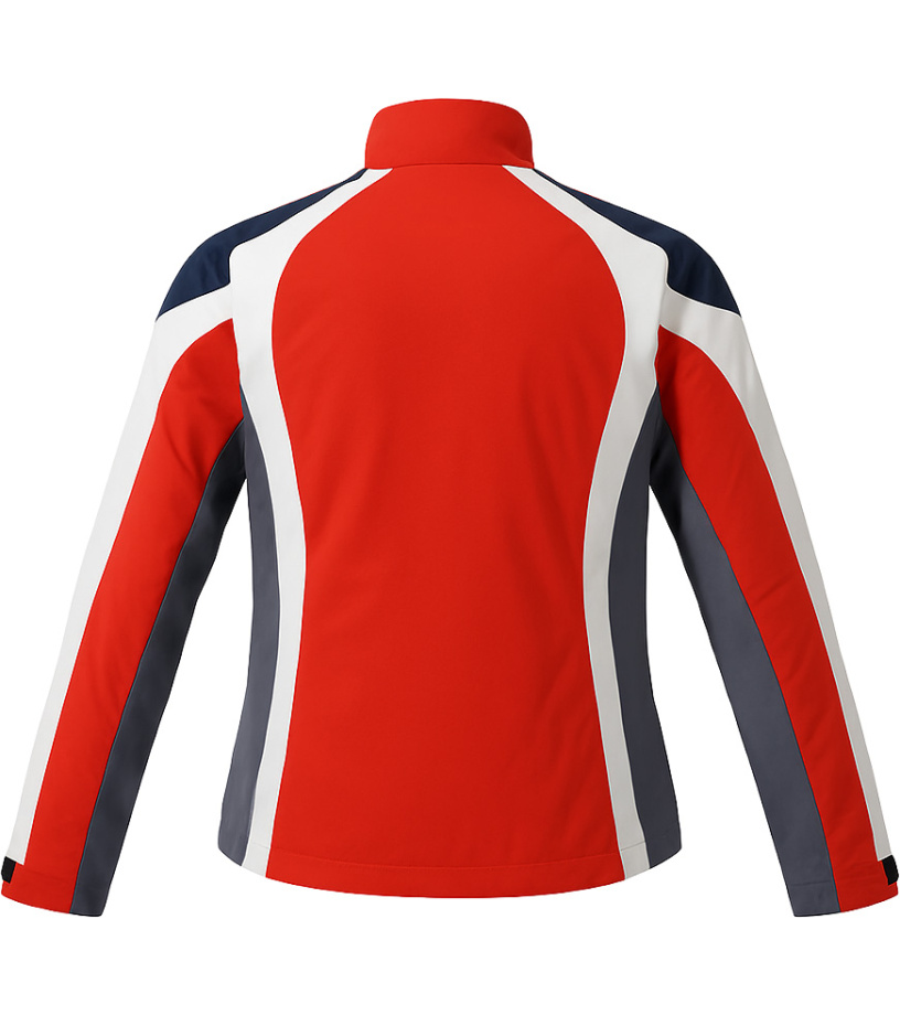 Díky výrazné barevné kombinaci červené, bílé a šedé působí dynamicky a moderně. Ideální pro sportovní aktivity i volný čas v chladnějším počasí.