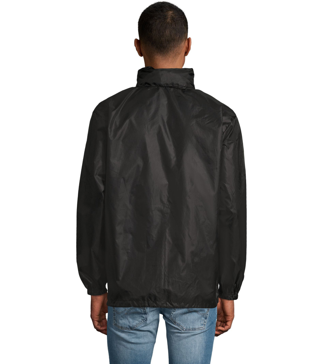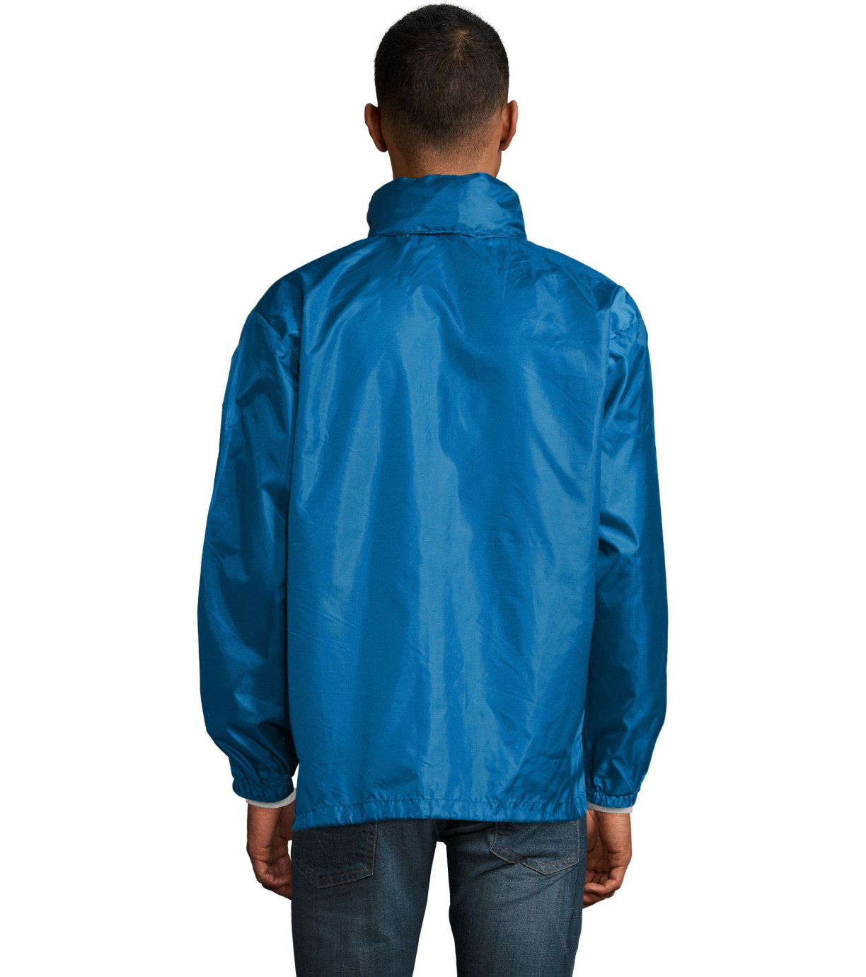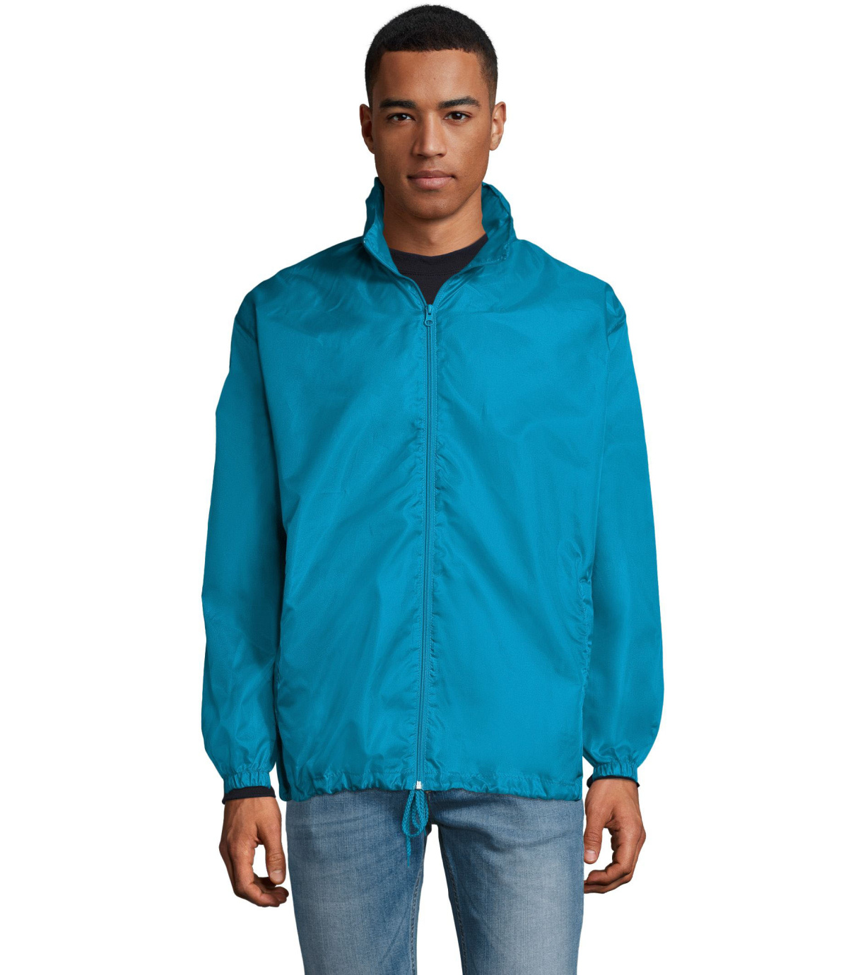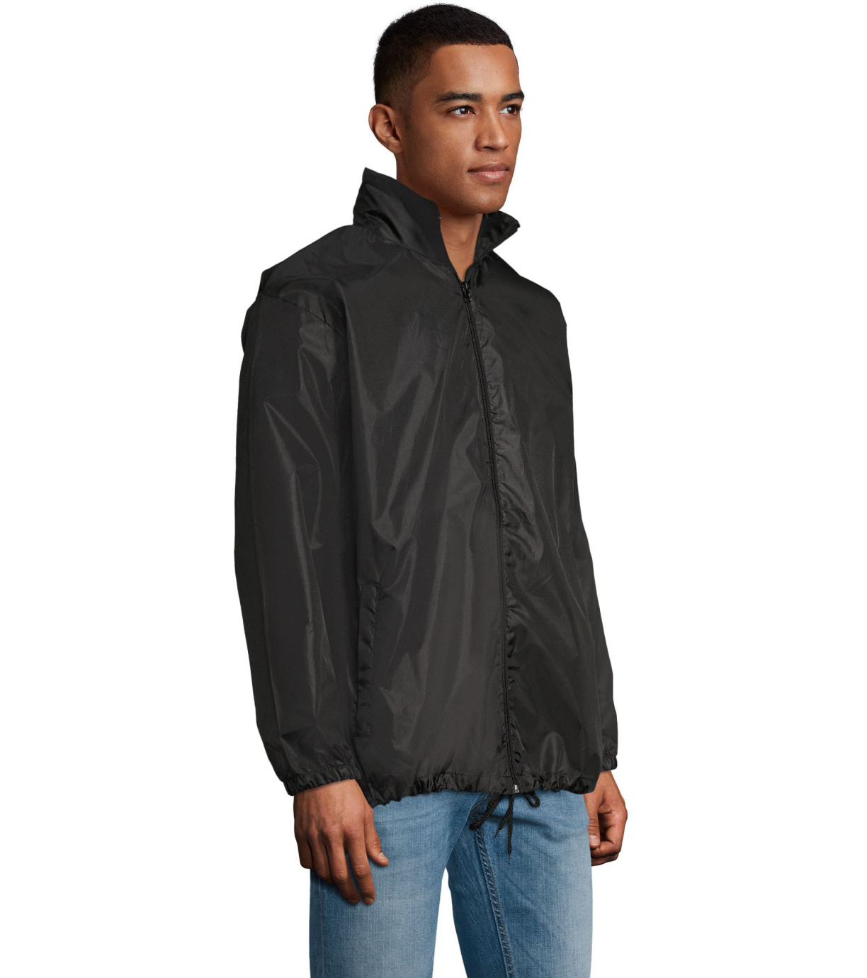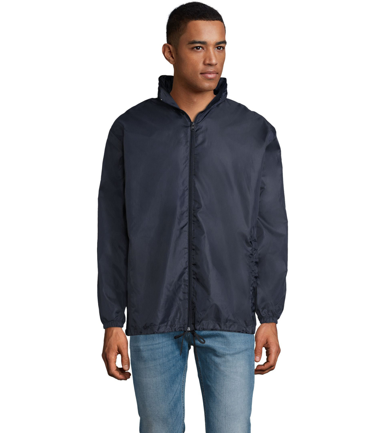 Pánská voděodolná bunda se zapínáním na zip. Má vyšší límec ve kterém je schovaná kapuce. Rukávy a spodní okraj jsou zakončeny elastickou manžetou.