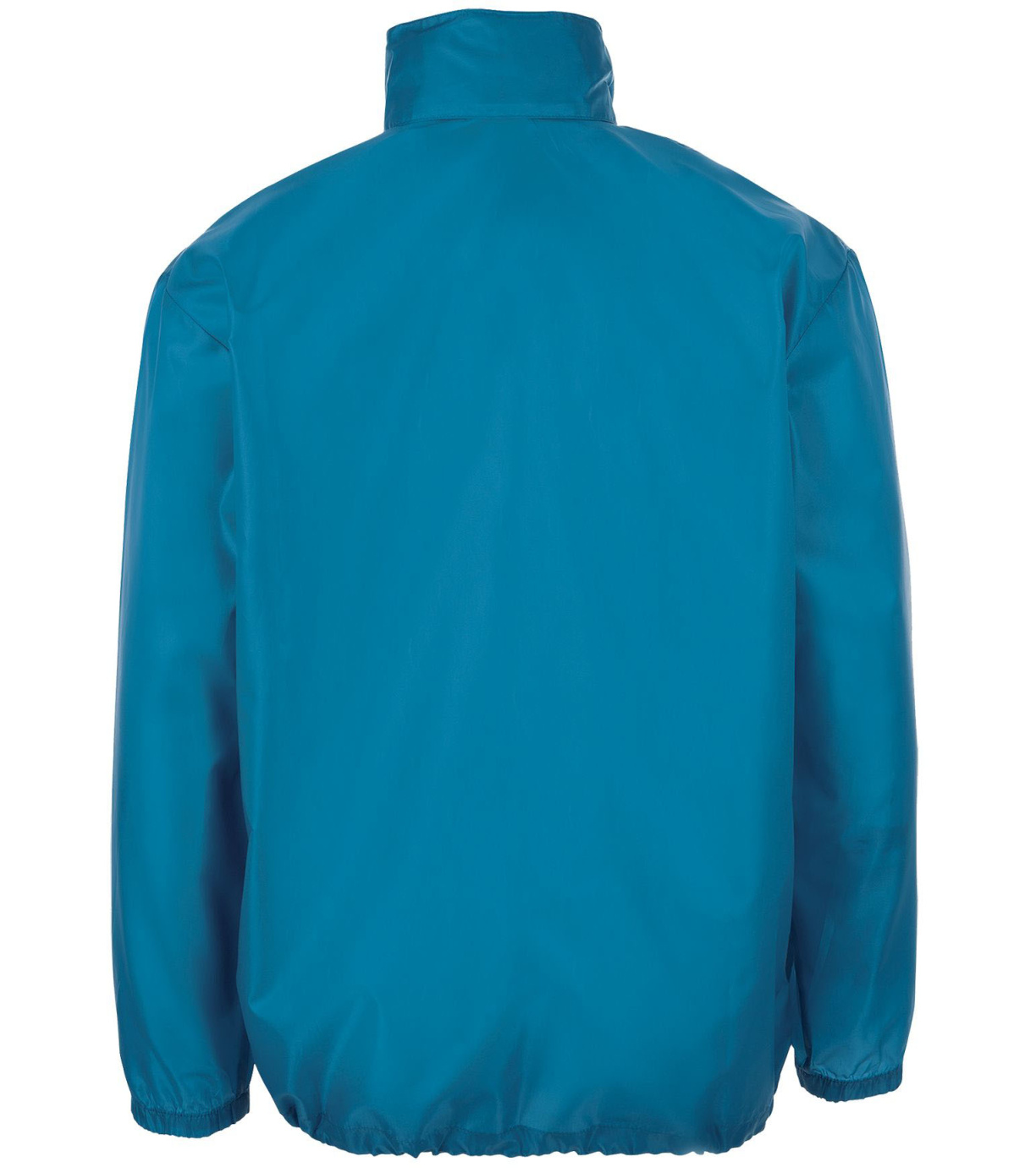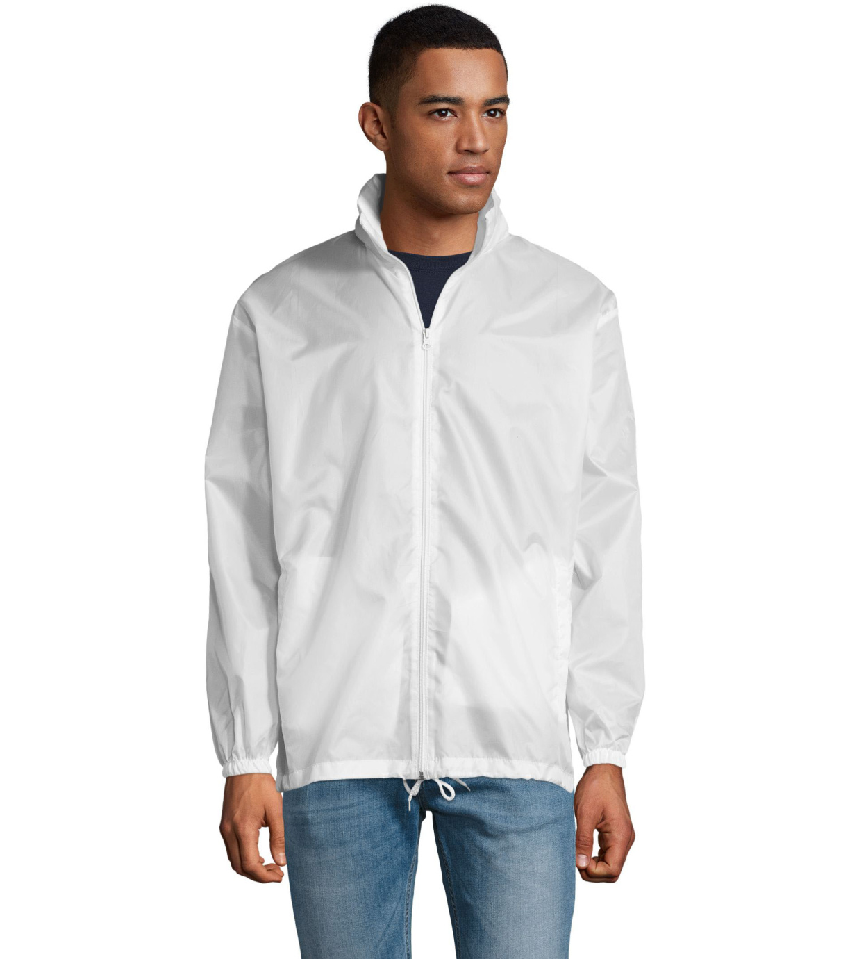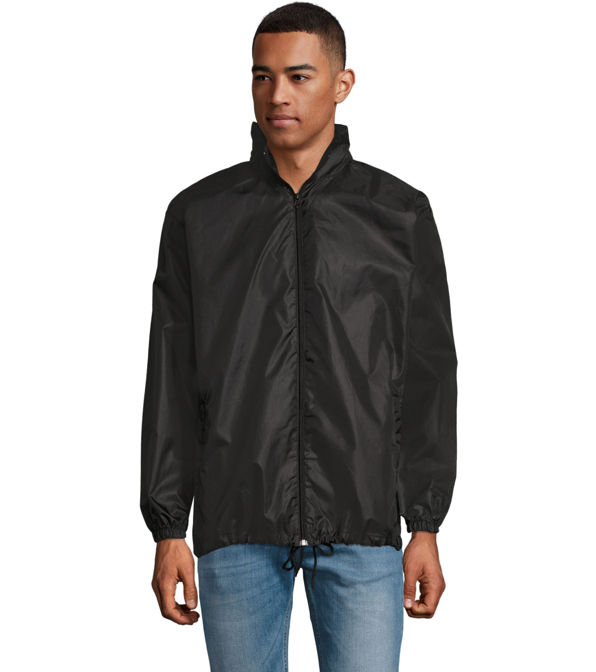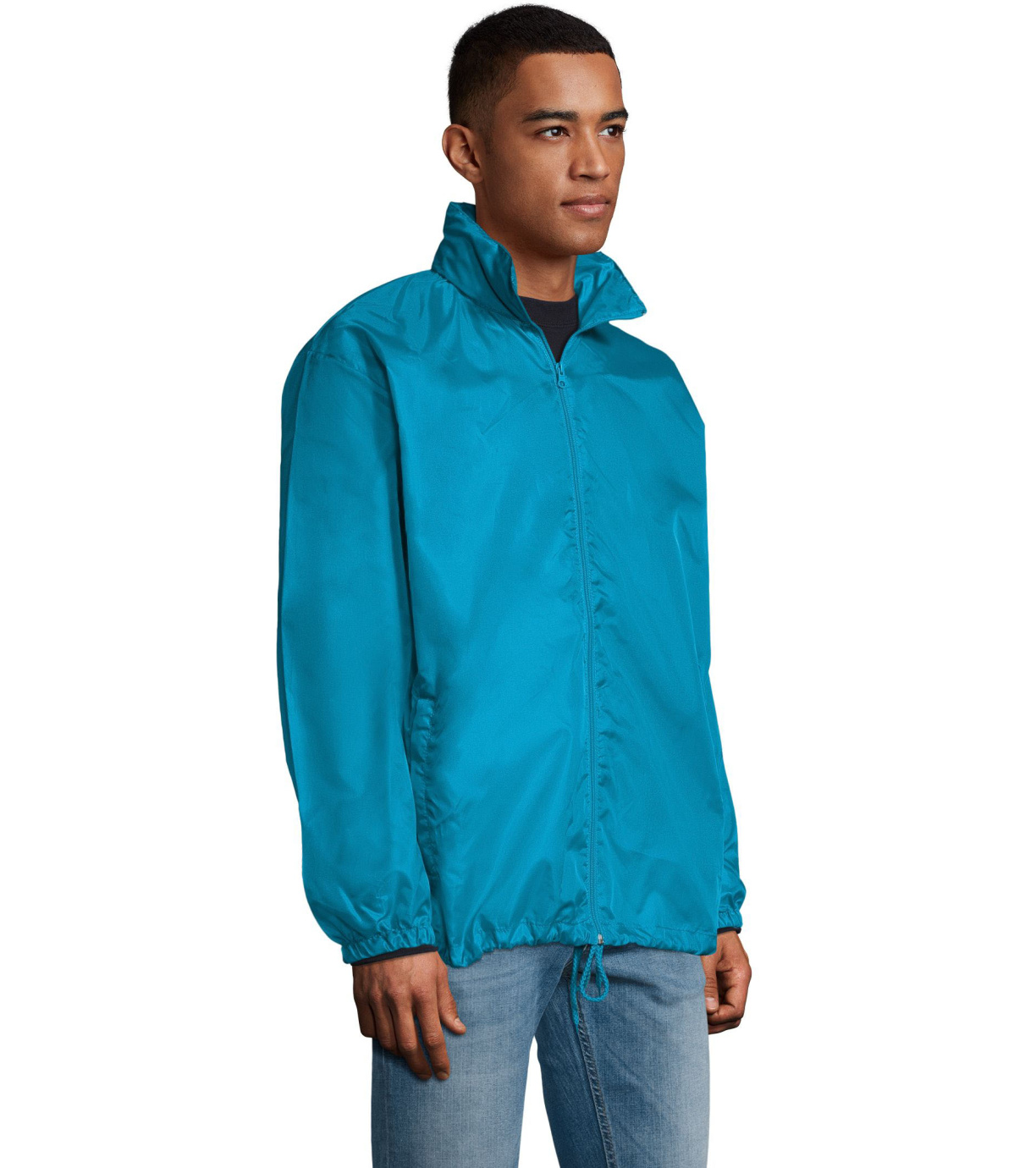 Pánská voděodolná bunda se zapínáním na zip. Má vyšší límec ve kterém je schovaná kapuce. Rukávy a spodní okraj jsou zakončeny elastickou manžetou.