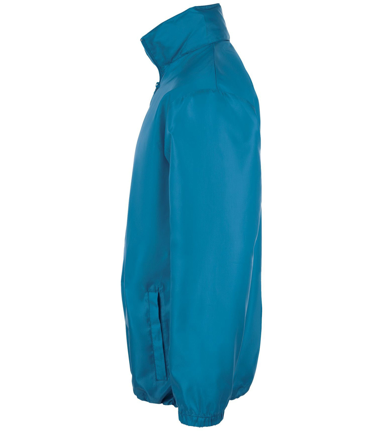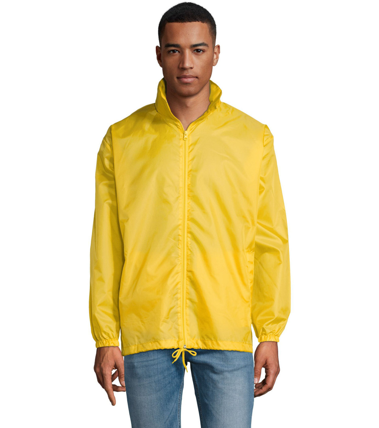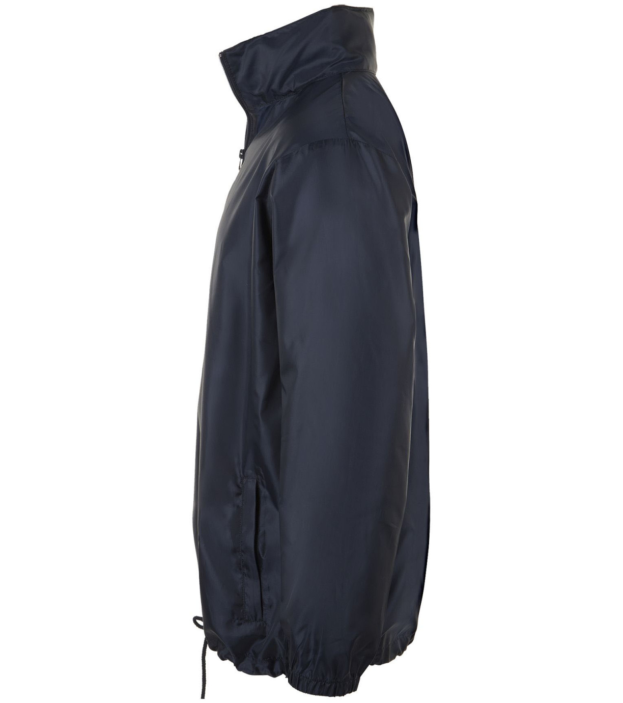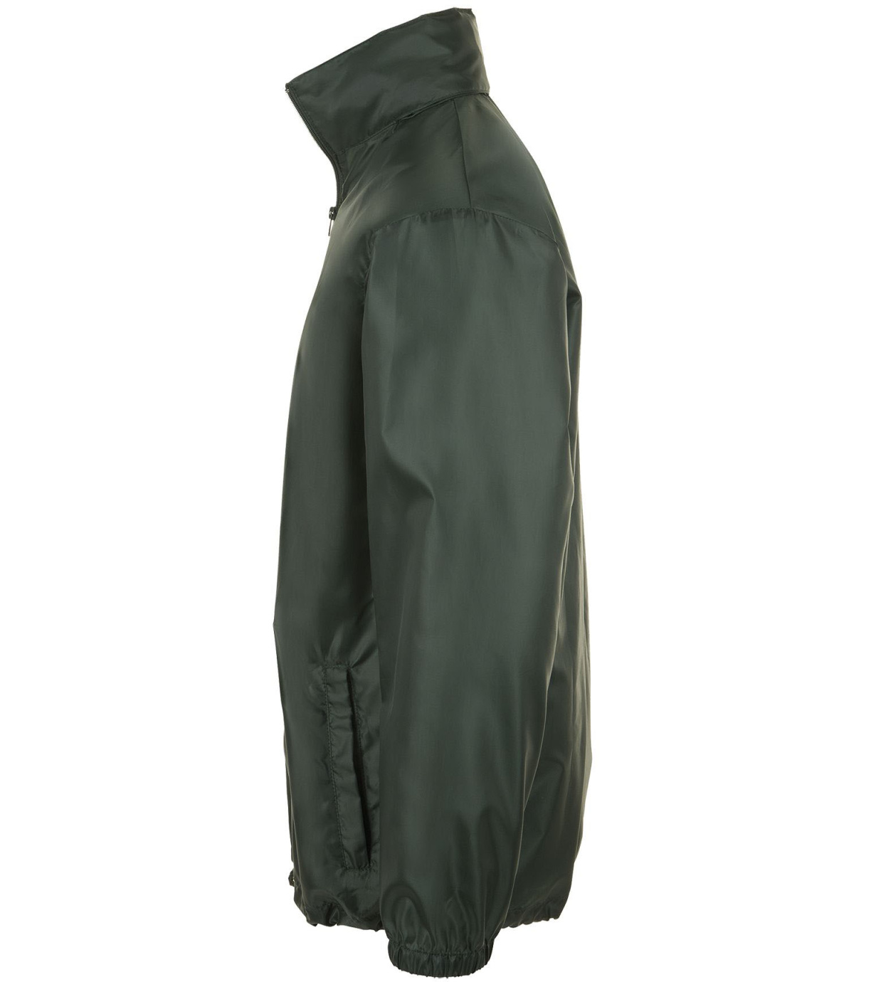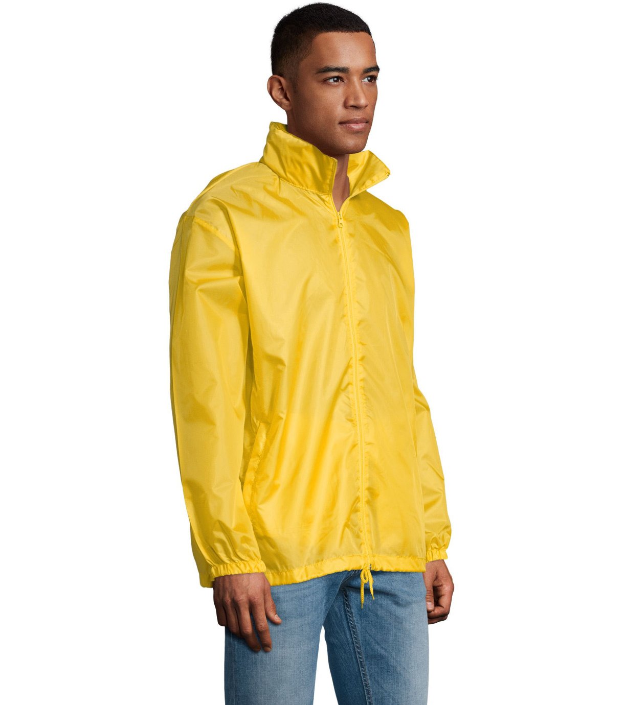 Pánská voděodolná bunda se zapínáním na zip. Má vyšší límec ve kterém je schovaná kapuce. Rukávy a spodní okraj jsou zakončeny elastickou manžetou.