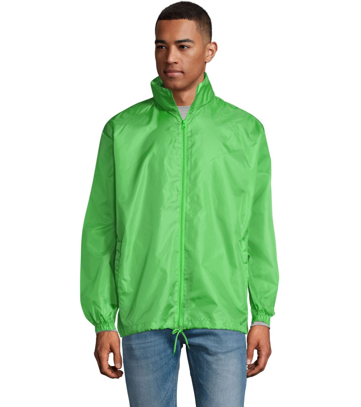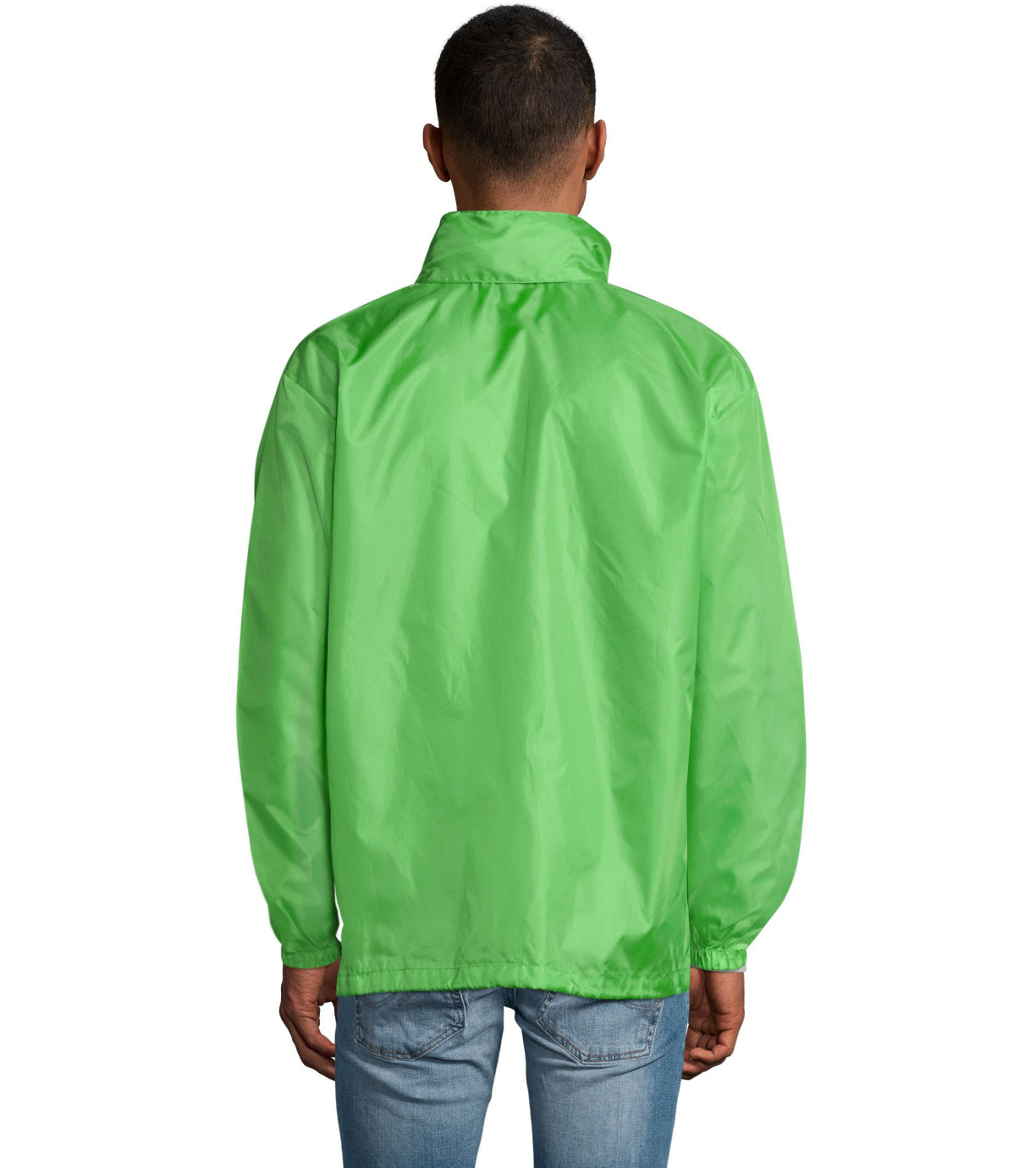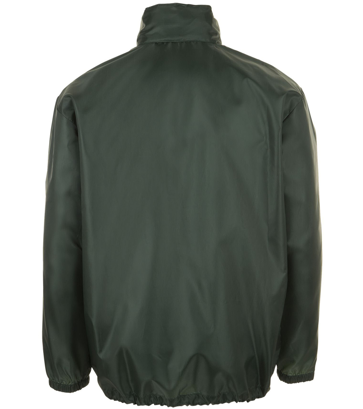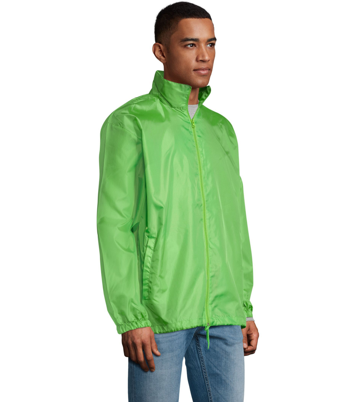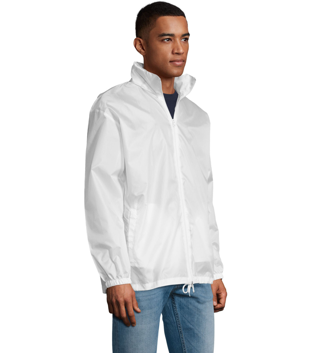 Pánská voděodolná bunda se zapínáním na zip. Má vyšší límec ve kterém je schovaná kapuce. Rukávy a spodní okraj jsou zakončeny elastickou manžetou.
