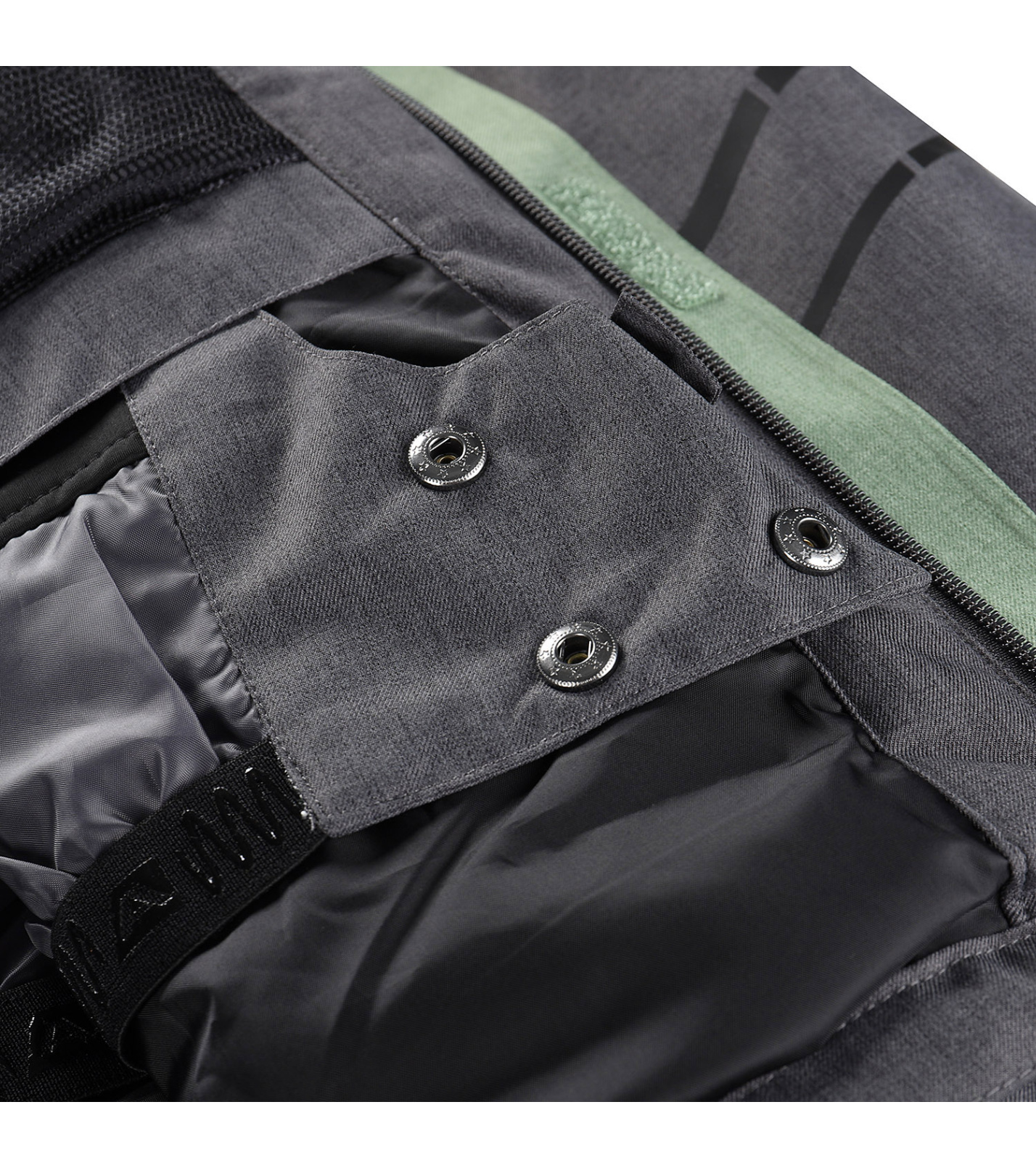 - kapsy celkem 7, náprsní na zip, na rukávu se zipem na skipas, přední se zipem, vnitřní na zip, vnitřní ze síťoviny na lyžařské brýle