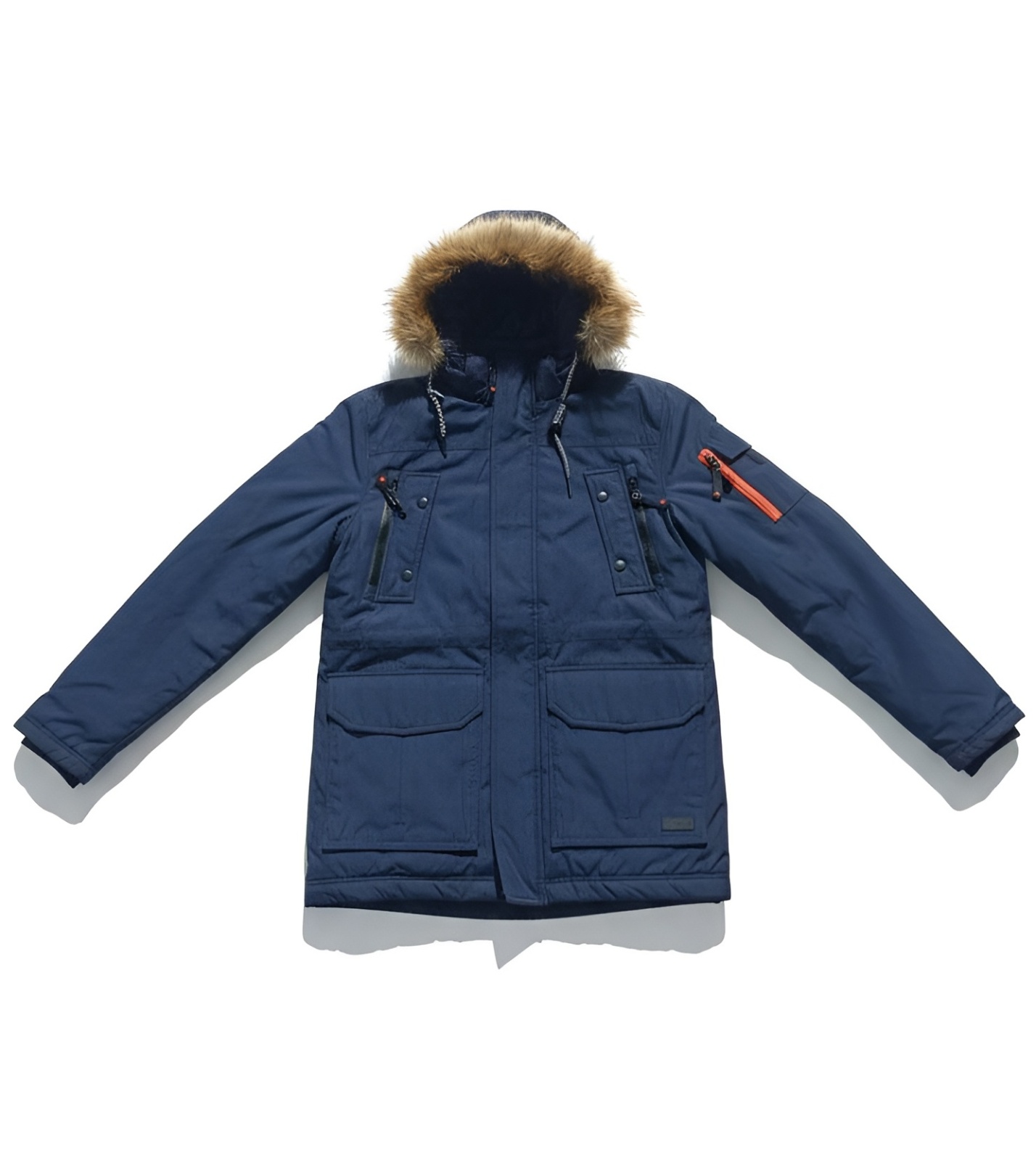 Pánská zimní bunda v tmavě modré barvě je ideální volbou do chladné zimy. Bunda má zateplenou konstrukci s kvalitní syntetickou výplní, která spolehlivě udržuje teplo i v nízkých teplotách. Svrchní materiál je odolný a vhodný pro každodenní nošení ve městě i na procházky v zimním počasí. Praktická kapuce s odnímatelnou umělou kožešinou poskytuje extra ochranu před chladem a větrem. Bunda je vybavena více kapsami – hrudními, spodními a kapsou na rukávu – pro pohodlné uložení drobností. Zapínání na zip krytý légou pomáhá lépe izolovat proti chladu. Moderní střih a funkční detaily dělají z této bundy univerzální kousek pro zimní sezónu.