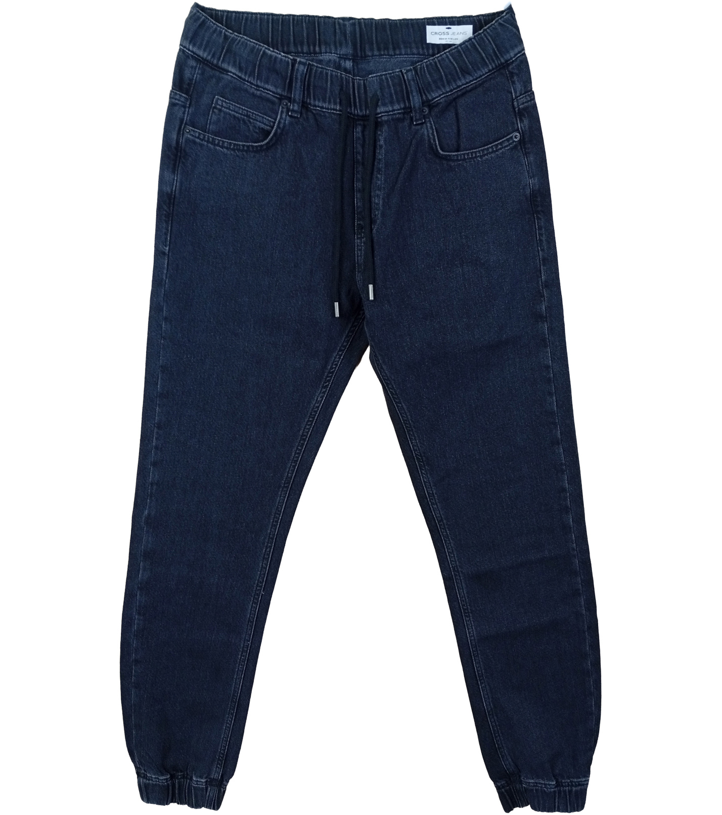 Pánské jogger džíny Cross spojují pohodlí se street stylem. Elastický pás se šňůrkou zajišťuje optimální přizpůsobení, zatímco dolní manžety vytvářejí moderní ukončení nohavic. Denim v tmavě modré barvě s minimalistickým vyblednutím umožňuje snadné kombinování - hodí se jak ke košili, tak ke sportovní mikině. Ideální volba pro muže, kteří hledají stylové kalhoty pro volný čas bez kompromisů na pohodlí.