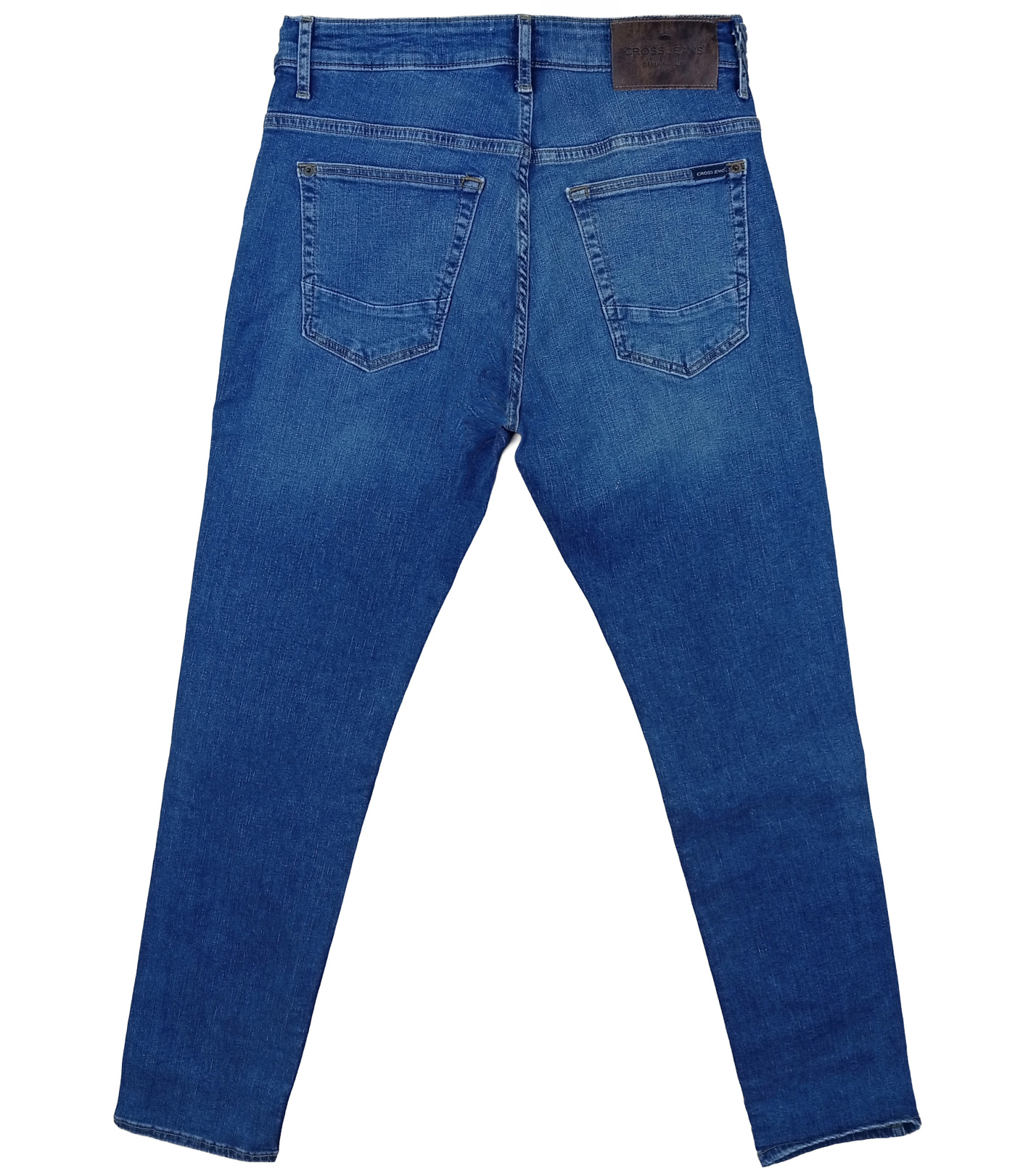 Pánské džíny Cross představují moderní slim fit střih s lehkým zužováním nohou, který drží proporce a zároveň nepůsobí příliš těsně. Díky jasně modré used denim barvě se snadno kombinují s košilí, tričkem i mikinou, a elastický materiál se postará o komfortní nošení během celého dne. Klasický pas se zapínáním na knoflík a zip dodává trvanlivost, zatímco decentní praní zjemní vzhled a přidává džínům vintage charakter.