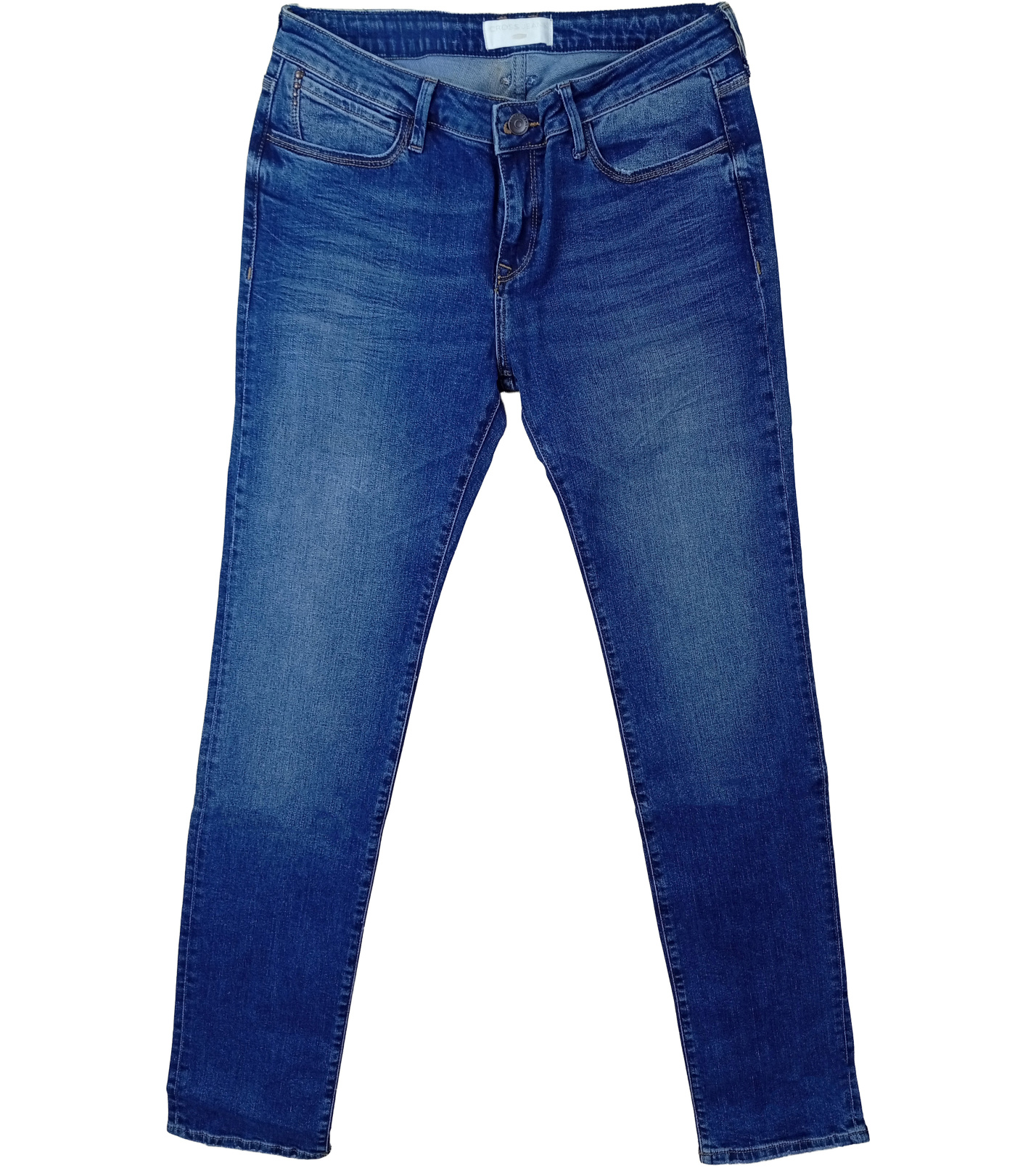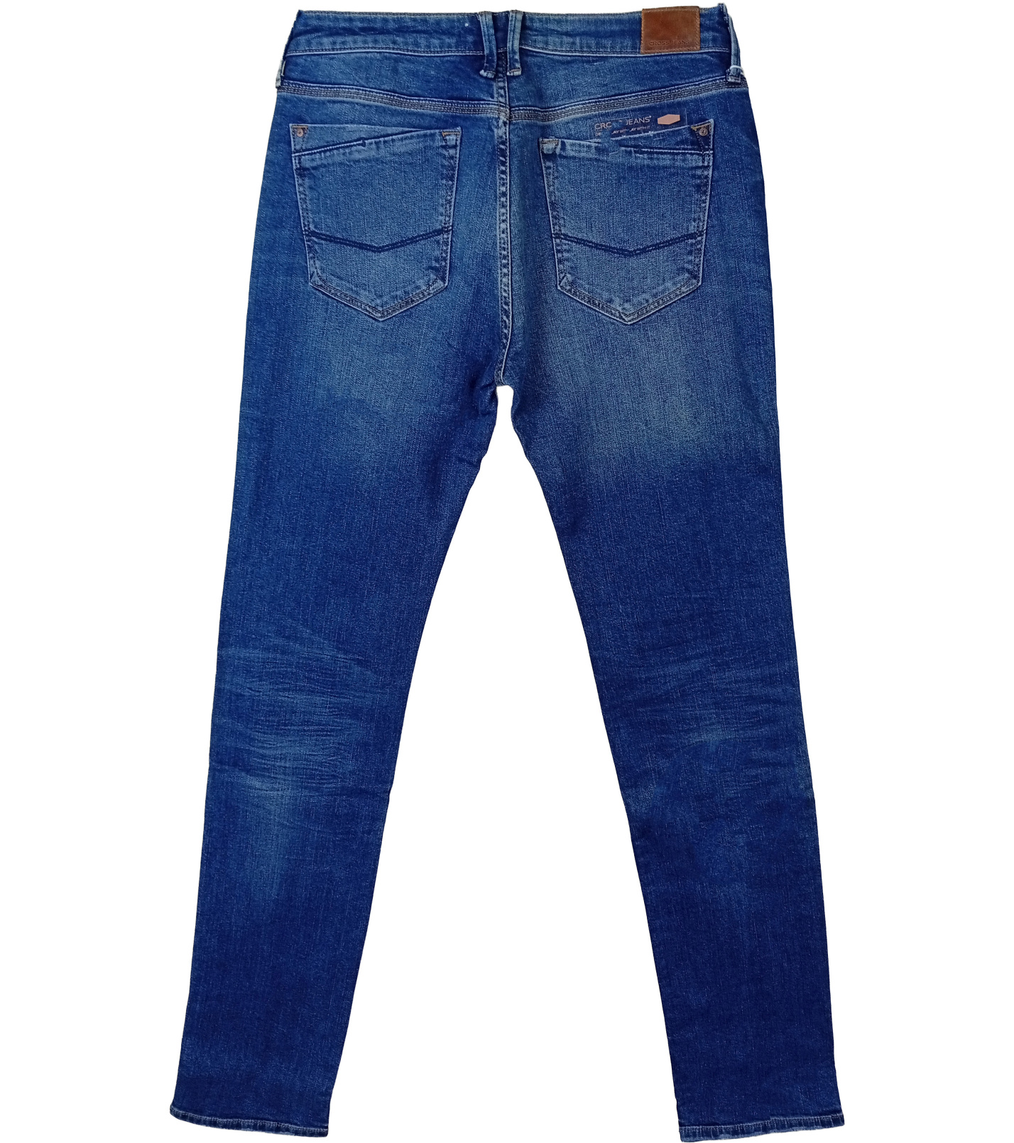Pánské džínové kalhoty v klasickém modrém odstínu s jemným vyšisovaným efektem představují univerzální kousek pro každodenní nošení. Jsou vyrobeny z kvalitního denimu s příměsí elastanu, který zajišťuje pohodlí a volnost pohybu. Úzký slim fit střih se zúženými nohavicemi dodává moderní vzhled, zatímco střední pas a klasické zapínání na zip a knoflík poskytují komfort při nošení.