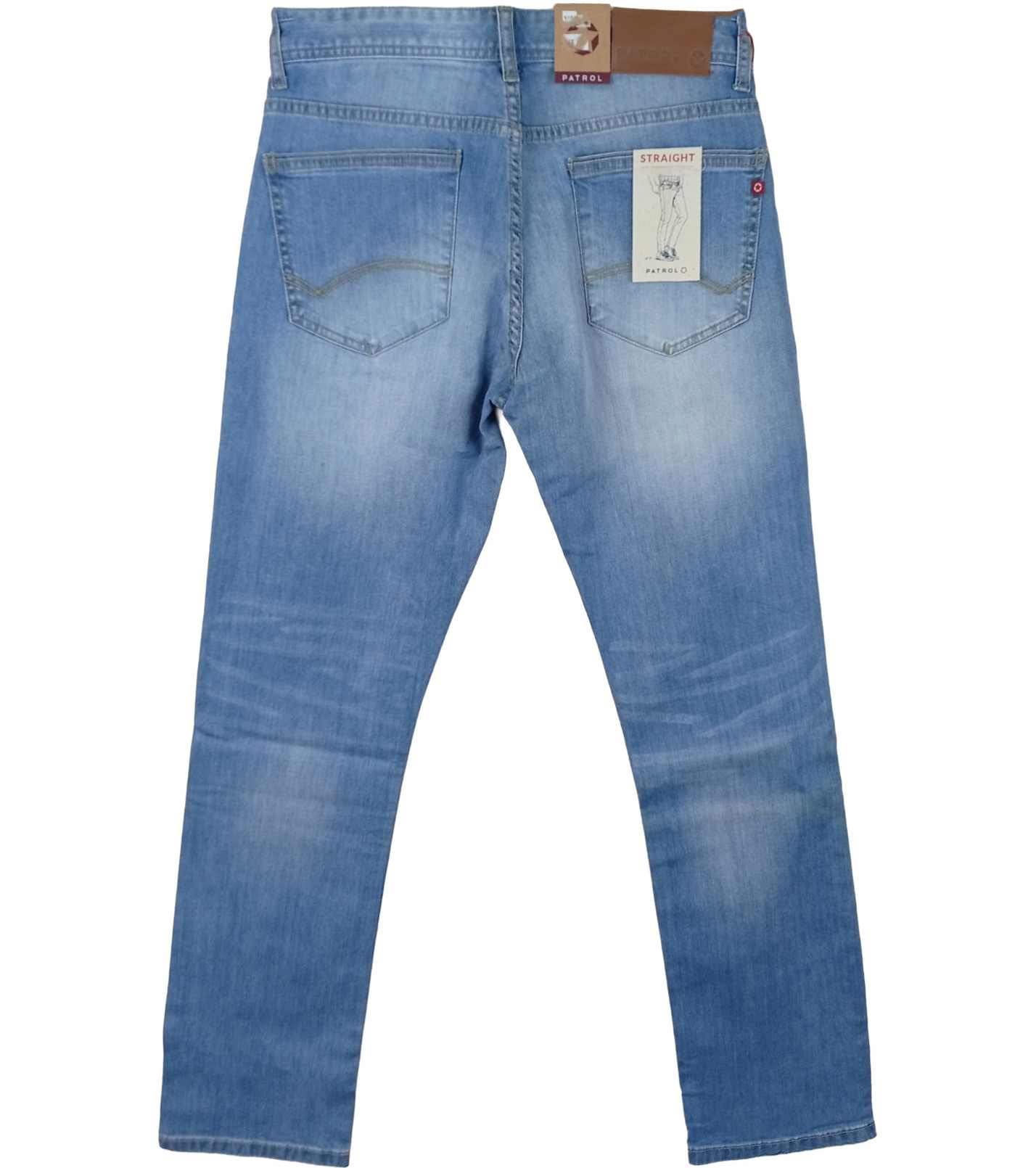 Světle modré džíny mají jedinečný vyšisovaný efekt, který dodává na modernosti a lehkosti. Klasický rovný střih nabízí pohodlí při nošení a univerzální využití pro každodenní outfit. Kvalitní denim je připraven na dotek a dobře drží tvar. Džíny mají zapínání na knoflík a zip, pět kapes a decentní kontrastní prošití. Ideální volba pro volný čas a nenucené městské kombinace.