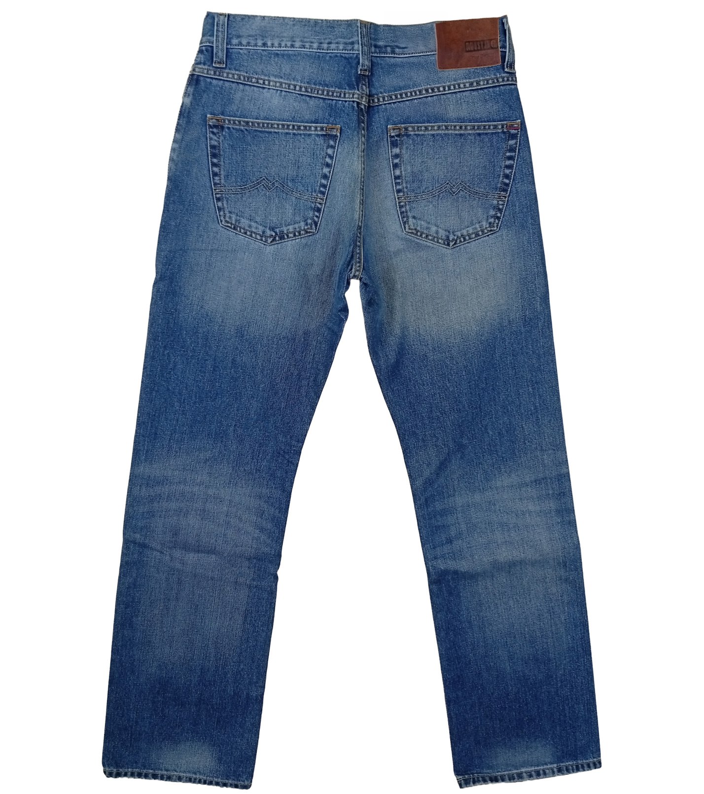 Tyto pánské rifle v klasickém modrém odstínu s lehce opraným vzhledem nabízejí univerzální a pohodlný styl pro každodenní nošení. Mají rovný střih s mírným rozšířením od kolen dolů, středně vysoký pas a zapínání na zip s knoflíkem. Typický pětkapsový design zahrnuje dvě přední kapsy, malou kapsičku na mince a dvě zadní kapsy. Džínovina je doplněna jemným vyšisováním v oblasti stehen a kolen, které dodává kalhotám moderní charakter. Díky své jednoduchosti se skvěle kombinují s tričkem, košilí i mikinou.