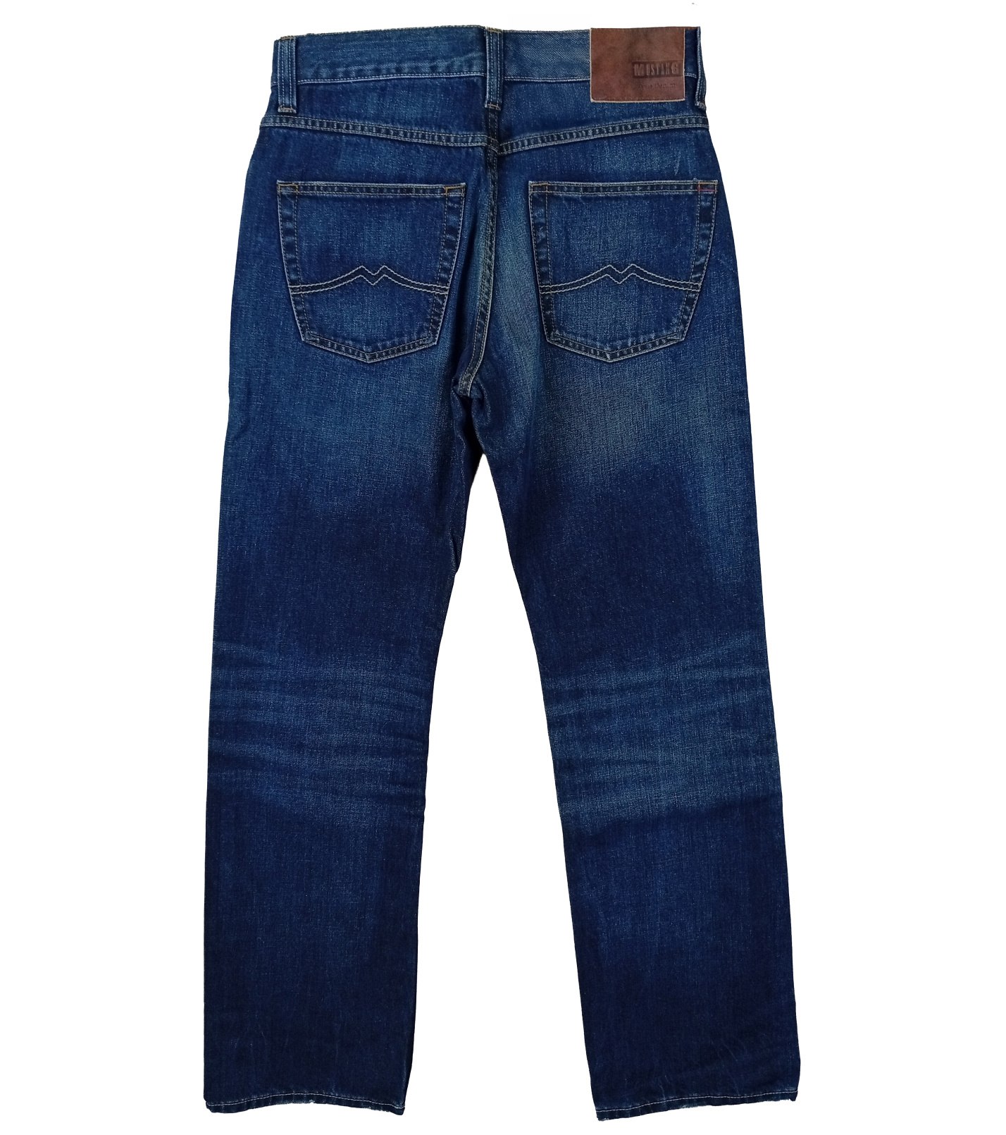 Moderní pánské džíny v tmavě modrém provedení s jemným vyšisováním na stehnech a kolenou. Kalhoty mají klasický střih s pěti kapsami, zapínání na zip a knoflík. V pase jsou poutka na pásek. Pohodlný materiál s příměsí elastanu zajišťuje komfort při každodenním nošení.