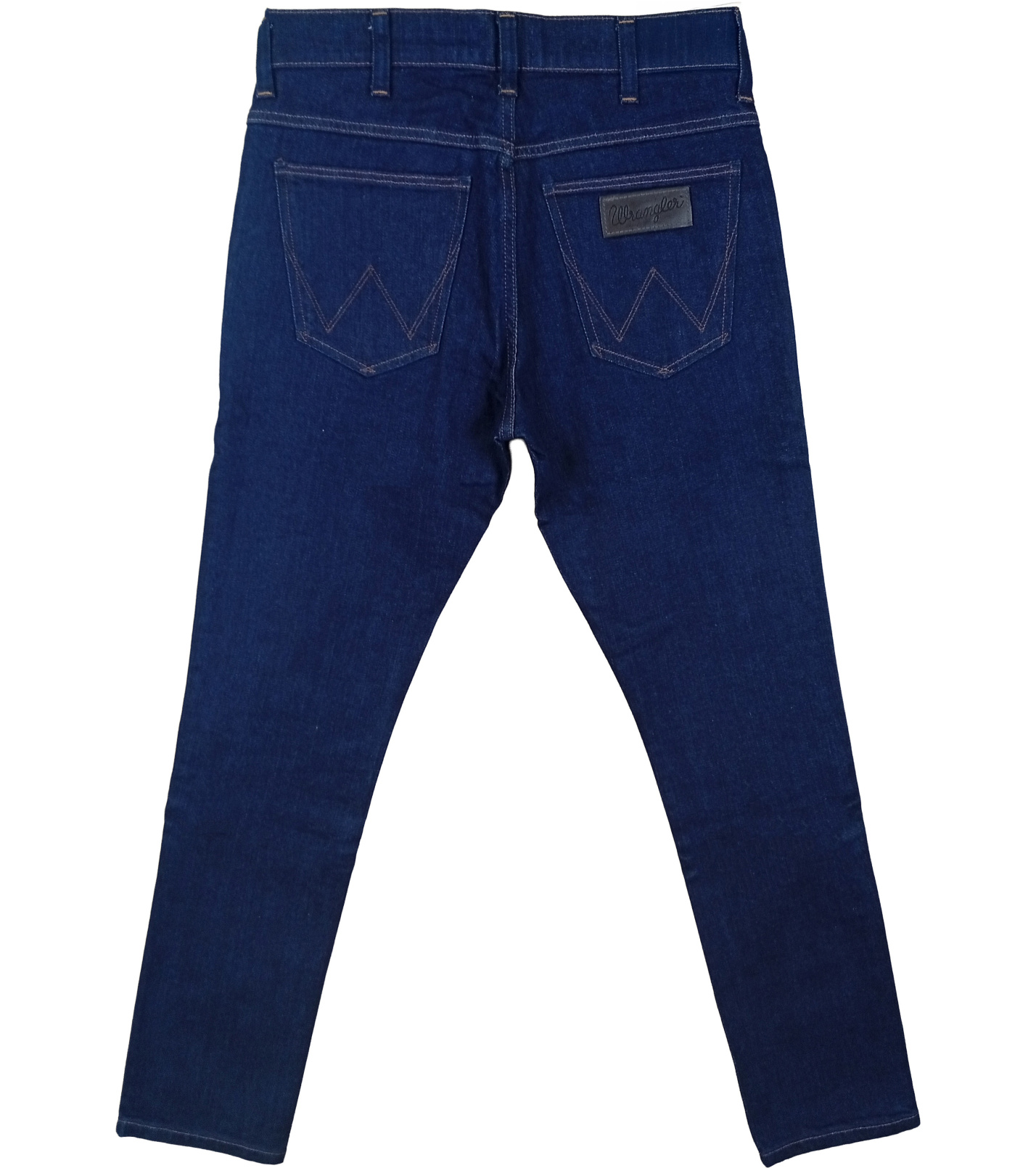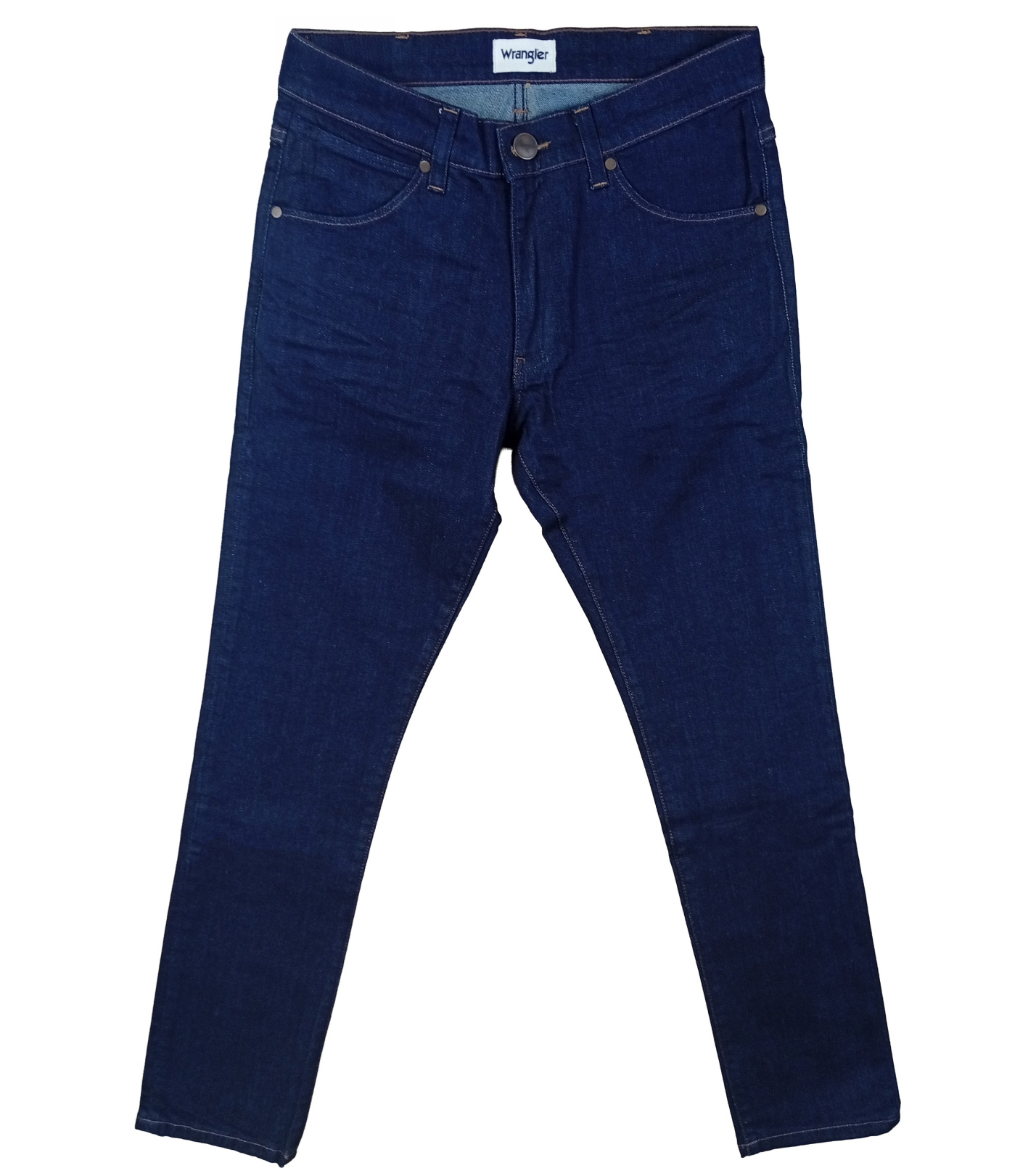 Pánské džíny Wrangler ve střihu slim fit pro moderní vzhled a pohodlné nošení. Tmavě modrý denim bez výrazného oprání působí elegantně a univerzálně - snadno se kombinuje s tričkem, košilí i mikinou. Klasický pětikapsový design doplňuje decentní kožený štítek Wrangler na zadní kapse a typické „W“ prošití.