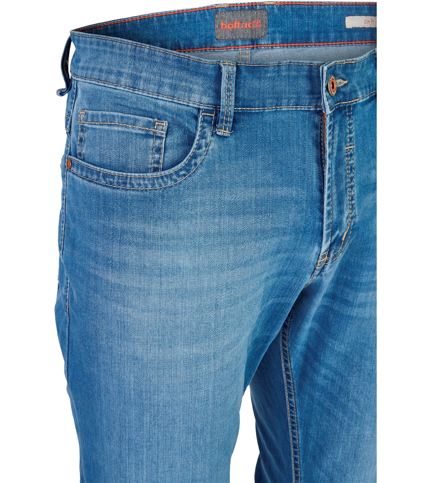 Pánské jeansy se zapínáním na zip. Značkové džíny jsou užšího střihu a s užší nohavicí dole. Rifle mají dvě přední a dvě zadní klasické prostorné kapsy a jednu malou kapsičku, které je součástí pravé přední kapsy. Kožená cedulka se značkou je našita na zadní straně kalhot. Kalhoty jsou lehce zesvětleny v oblasti stehen a kolen.