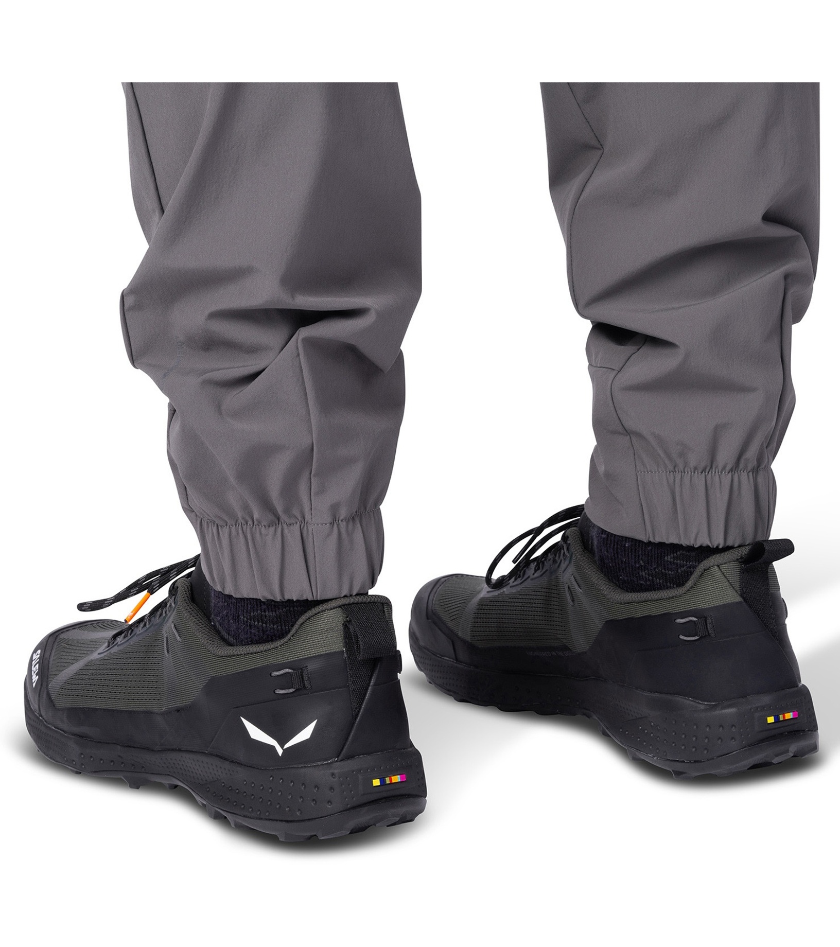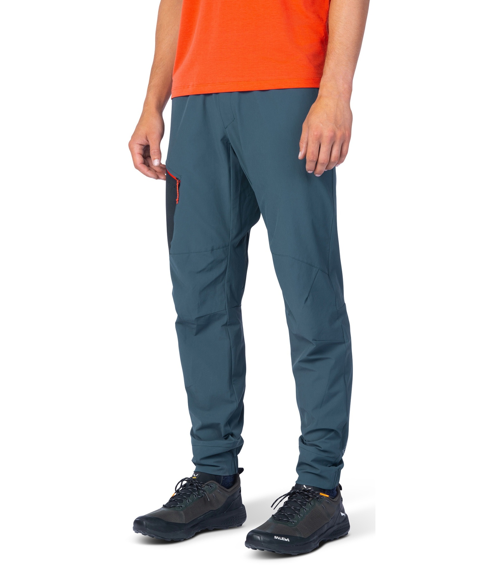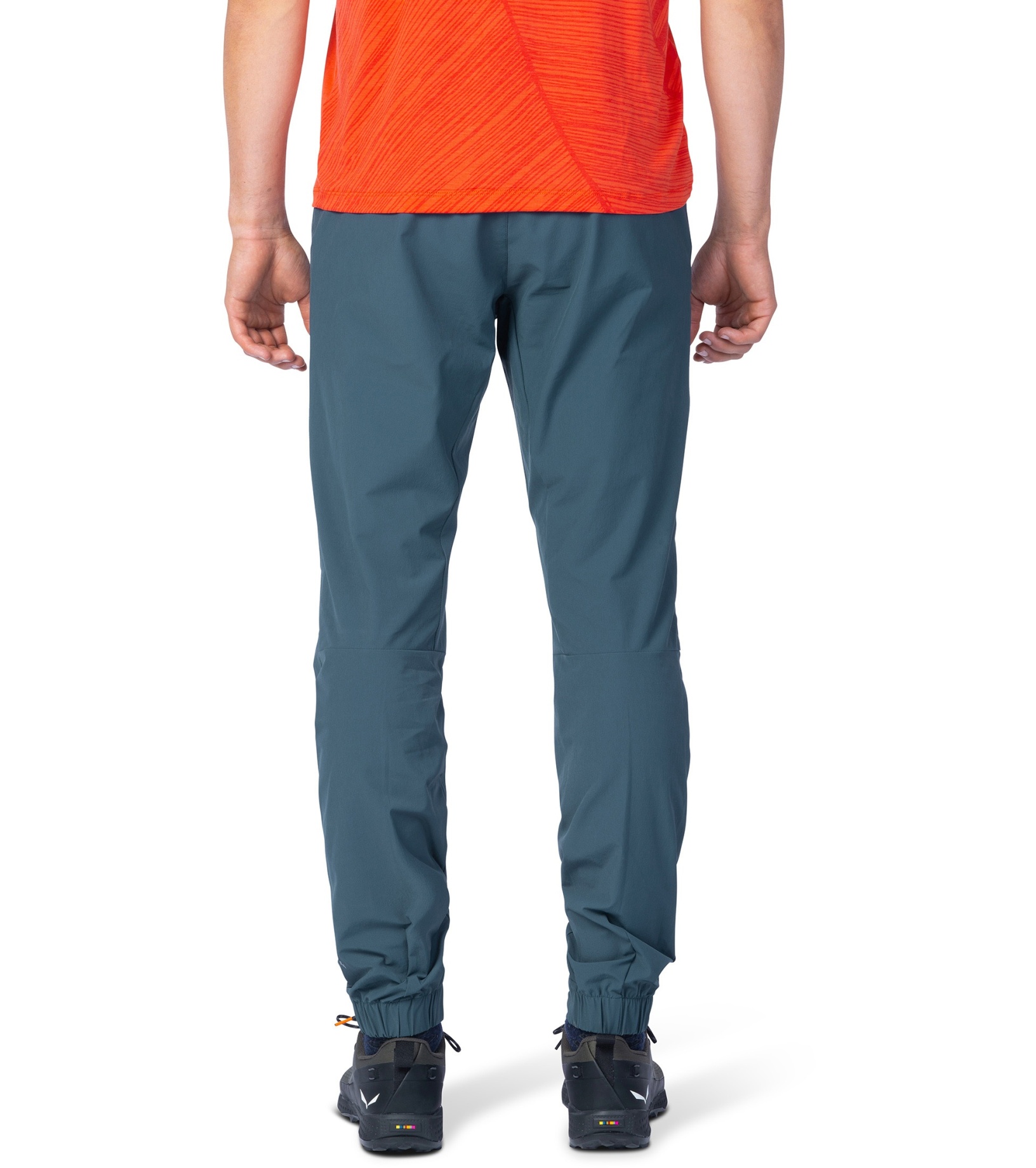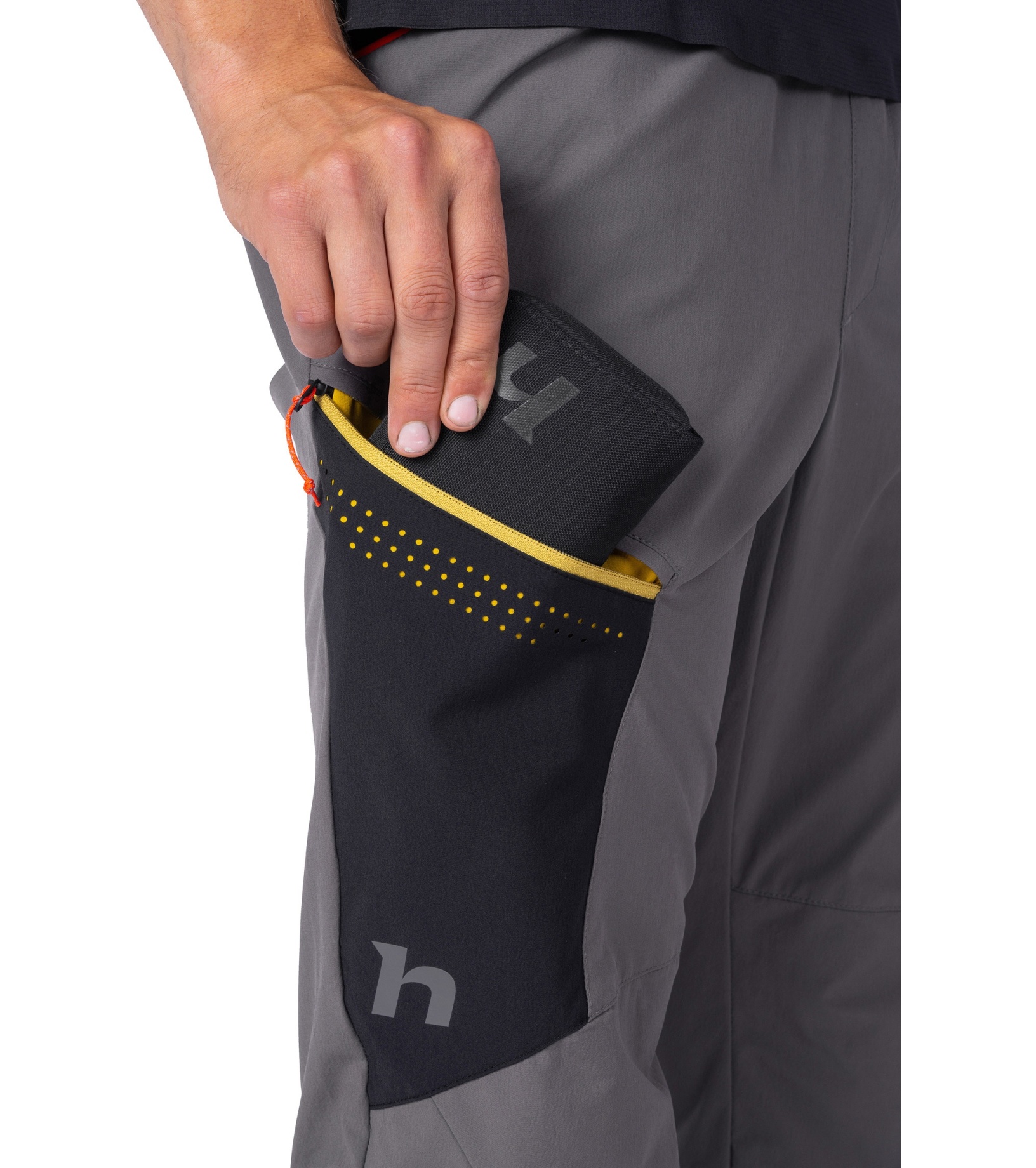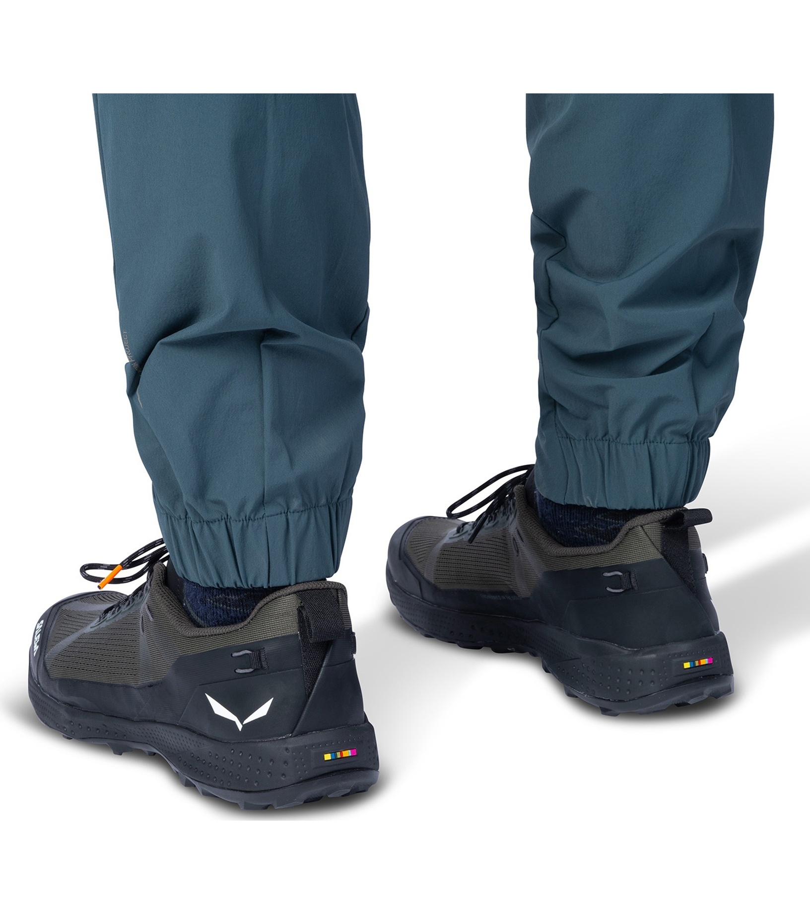 Spodní lem nohavic je lehce zúžený a vzadu stažený do gumy pro lepší usazení. Praktické uložení drobností umožňují dvě prostorné kapsy vepředu a jedna stehenní kapsa na kvalitní YKK zip. Vnitřní kapsy s potiskem dodávají modelu moderní vzhled. Povrch kalhot je ošetřen vodoodpudivou úpravou DWR-C0, která neobsahuje škodlivé fluorkarbonové látky a je tak šetrnější k přírodě (PFC free).