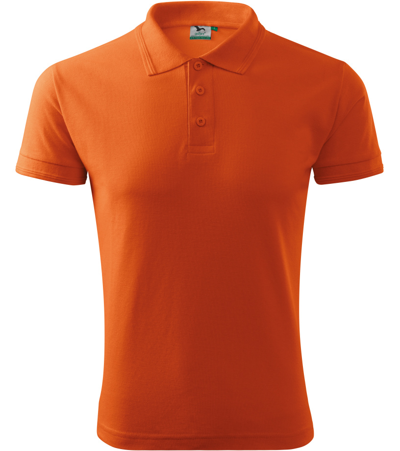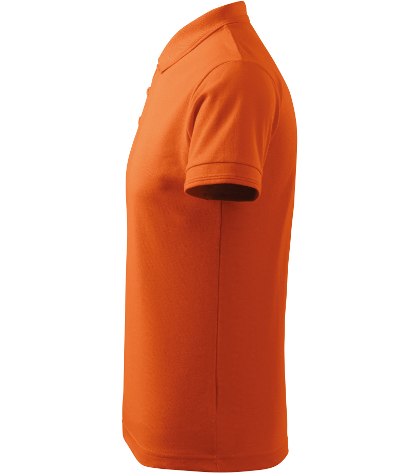 Pánská polokošile střihu s bočními švy vhodná pro potisk a výšivky má límeček a lemy rukávů s dvojitým reliéfním proužkem z žebrového úpletu 1:1, légu s 3 knoflíčky v barvě materiálu, vnitřní průkrčník začištěn páskou z vrchového materiálu a zpevnění ramenních švů páskou.