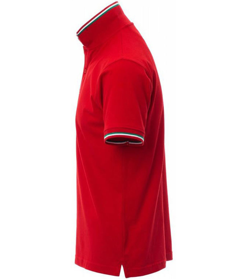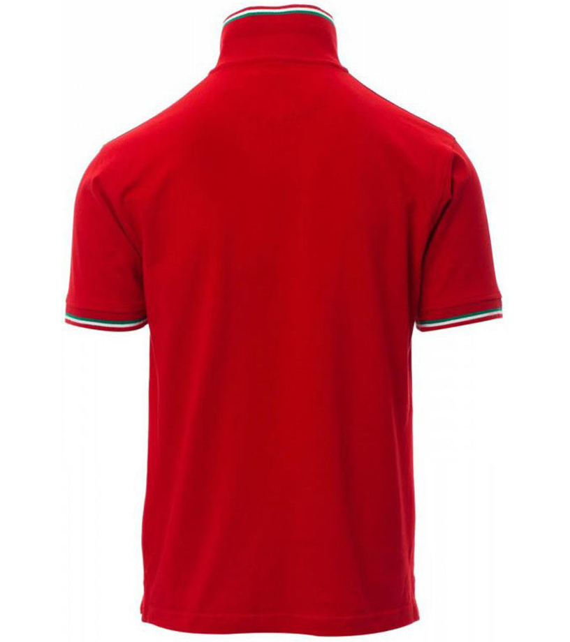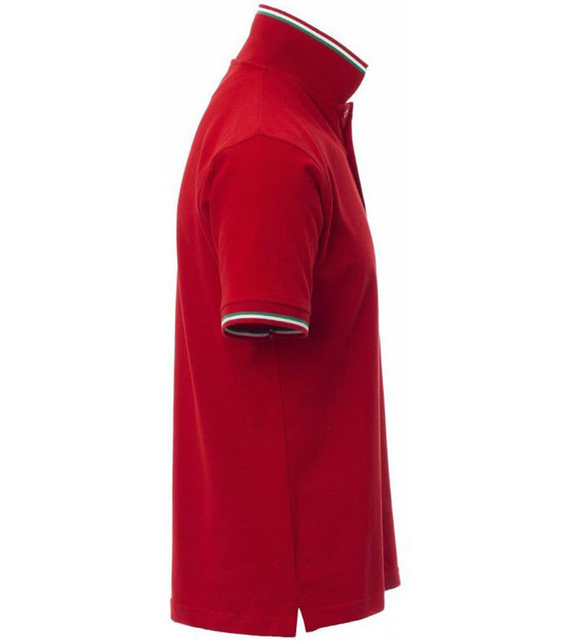 Polokošile s krátkým rukávem se 3 sladěnými knoflíky, kontrastní lemování v barvě italské trikolóry u krku a na rukávech, žebrovaný lem u krku a na rukávech, postranní rozparky se zesílenými švy, zakryté prošití límečku, postranní vyztužovací páska, pružné švy, tvarovaná výztuž na spodní straně límečku.