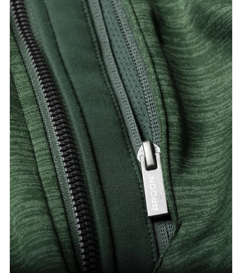 Lehká a maximálně prodyšná mikina díky použití materiálu ARDON® 3DBreathe v atraktivním designu melange. ARDON® 3DBreathe je rychleschnoucí, má vynikající tepelnou izolaci v kombinaci s výbornou prodyšností. Mikina má zapínání na zip s krytkou brady, praktické prostorné boční zipové kapsy, náprsní zipovou kapsu a kapuci s možností regulace objemu. Rukávy i spodní lem mikiny jsou zakončené žebrovaným úpletem. Namáhané partie jsou zpevněné funkční odolnou stretchovou látkou ARDON® BREEFFIDRY.