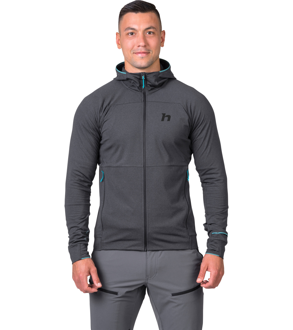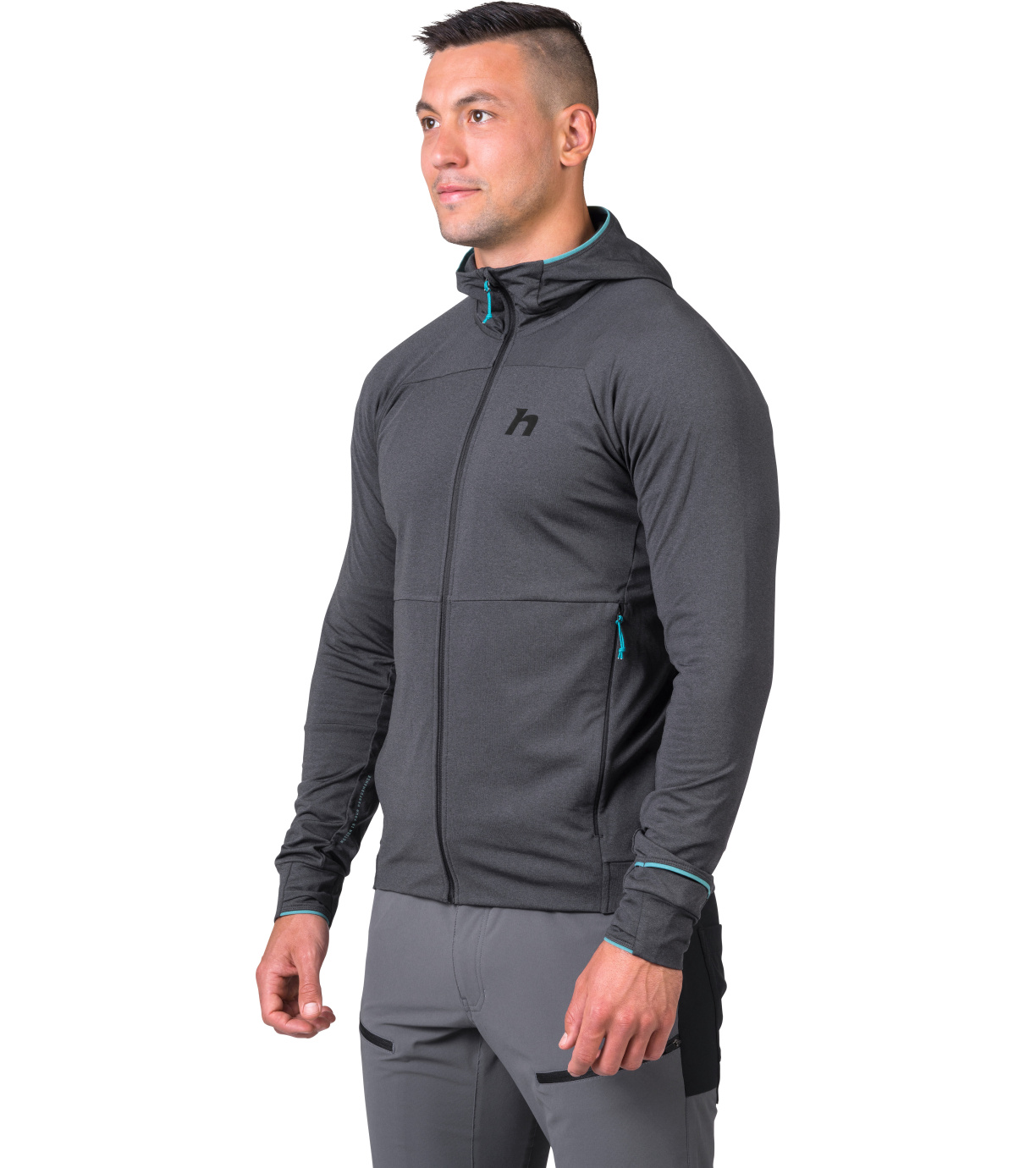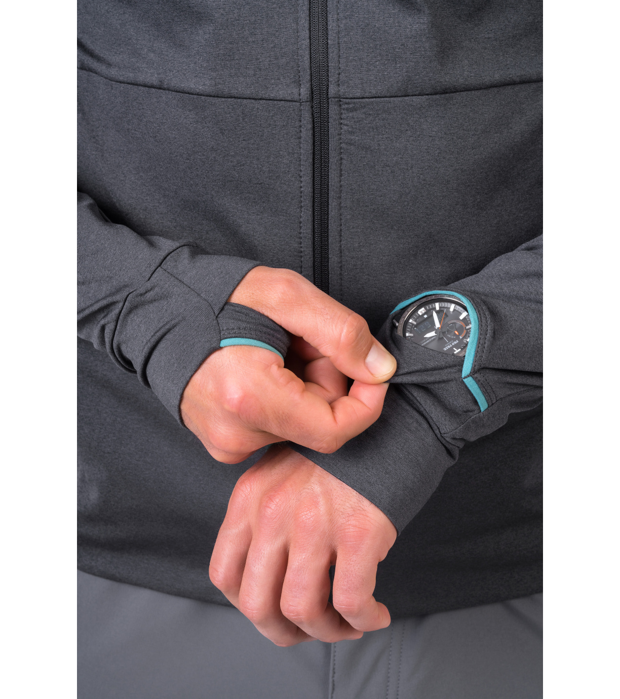 Kapuce lemovaná gumou, rukávy zakončené pružným lemem s otvorem na palec. Na levém rukávu oceníte praktický otvor na hodinky. Dvě hlavní kapsy na YKK zipy. Ideální jako druhá izolační vrstva pro přechodné období pro spíše rychlostní a intenzivní outdoorové aktivity.