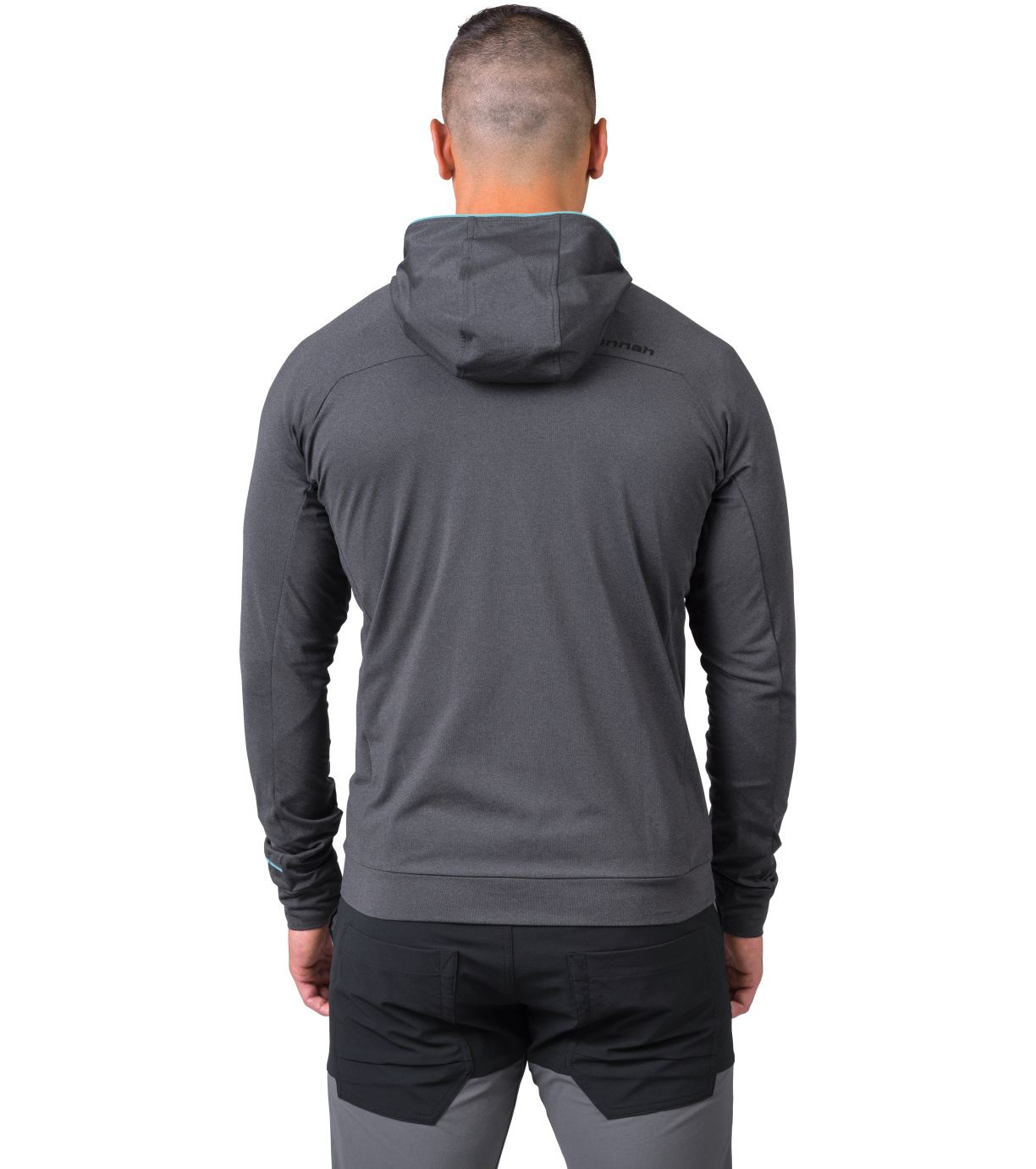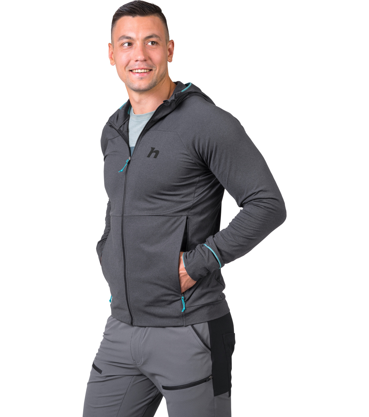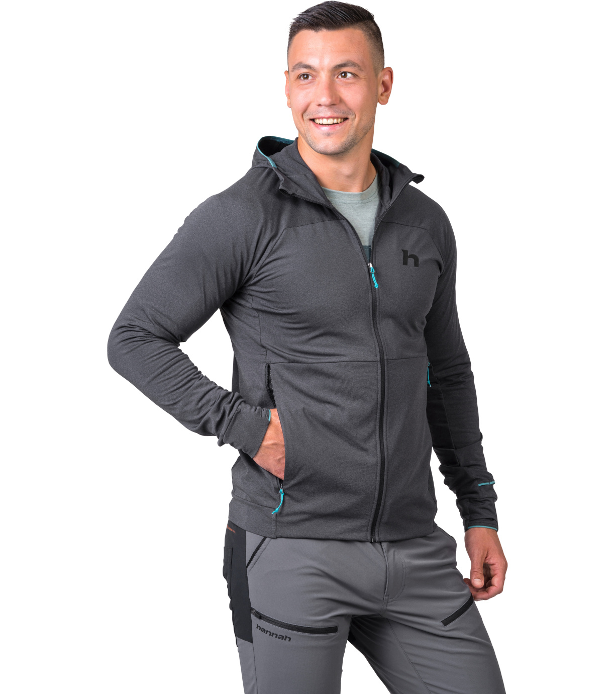 Kapuce lemovaná gumou, rukávy zakončené pružným lemem s otvorem na palec. Na levém rukávu oceníte praktický otvor na hodinky. Dvě hlavní kapsy na YKK zipy. Ideální jako druhá izolační vrstva pro přechodné období pro spíše rychlostní a intenzivní outdoorové aktivity.