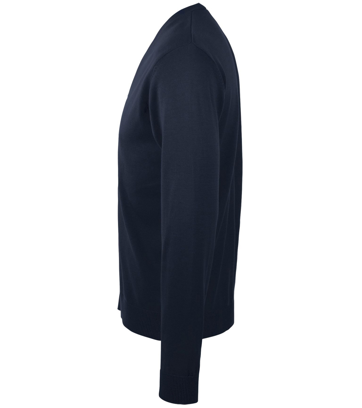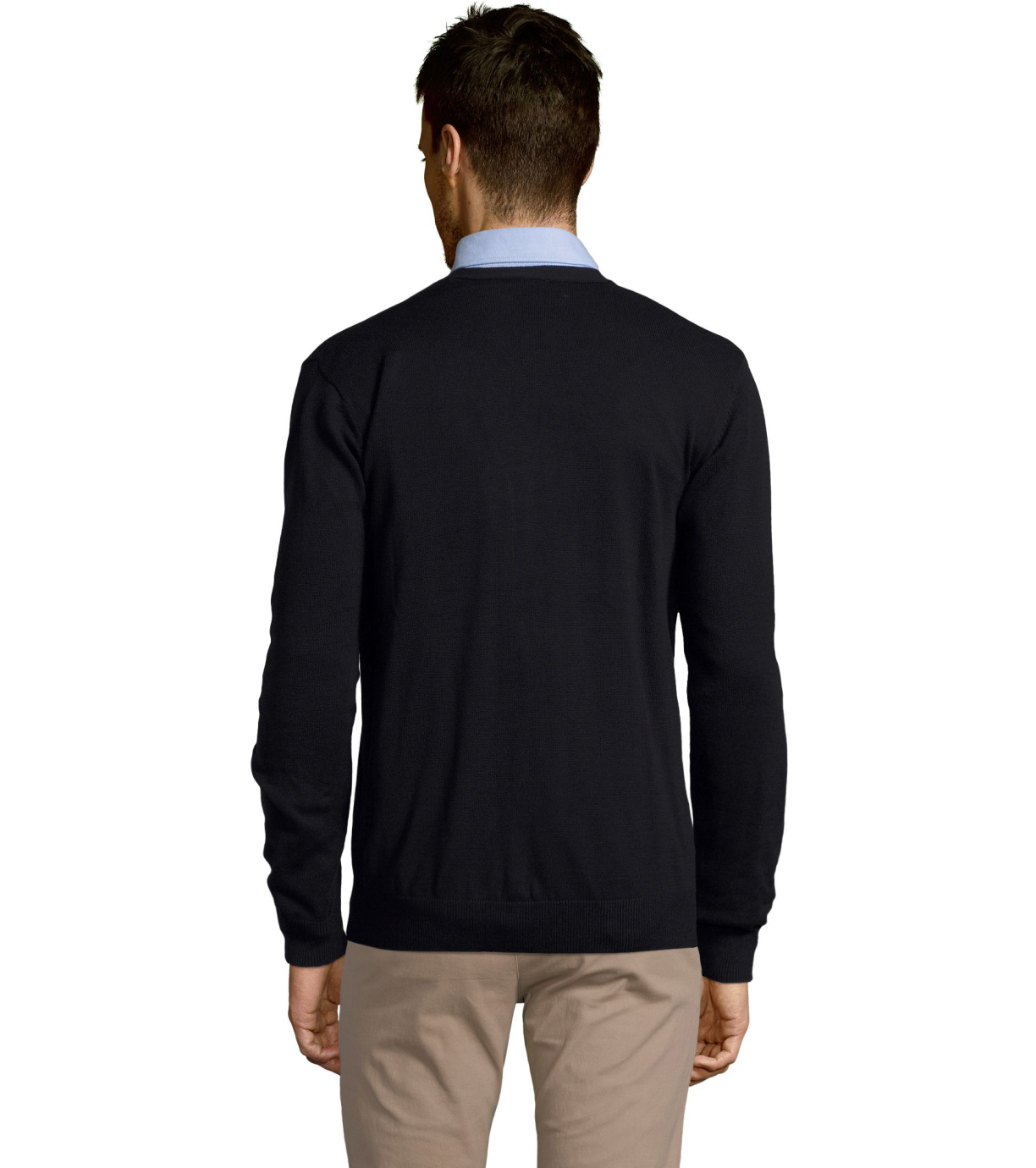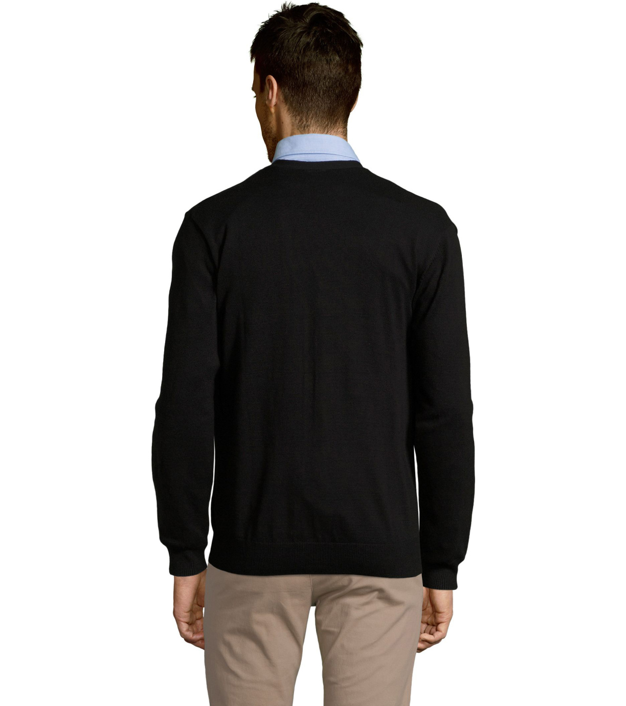 Pánský svetr na knoflíčky v nadčasovém designu. Svetr je pohodlný, elegantní a hodí se nosit na košile i polokošile. Výstřih ve tvaru písmene V. Rukávy a spodní okraj zakončeny elastickým žebrovaným lemem. Knoflíky v tónu svetru.. Plně tvarované průramky. Náhradní knoflík na vnitřním švu.