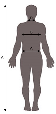 | D | Obvod krku | 37 - 38 | 39 - 40 | 41 - 42 | 44 - 46 | 45 - 46,5 | 48 - 50,5 | 51 - 52,5 |