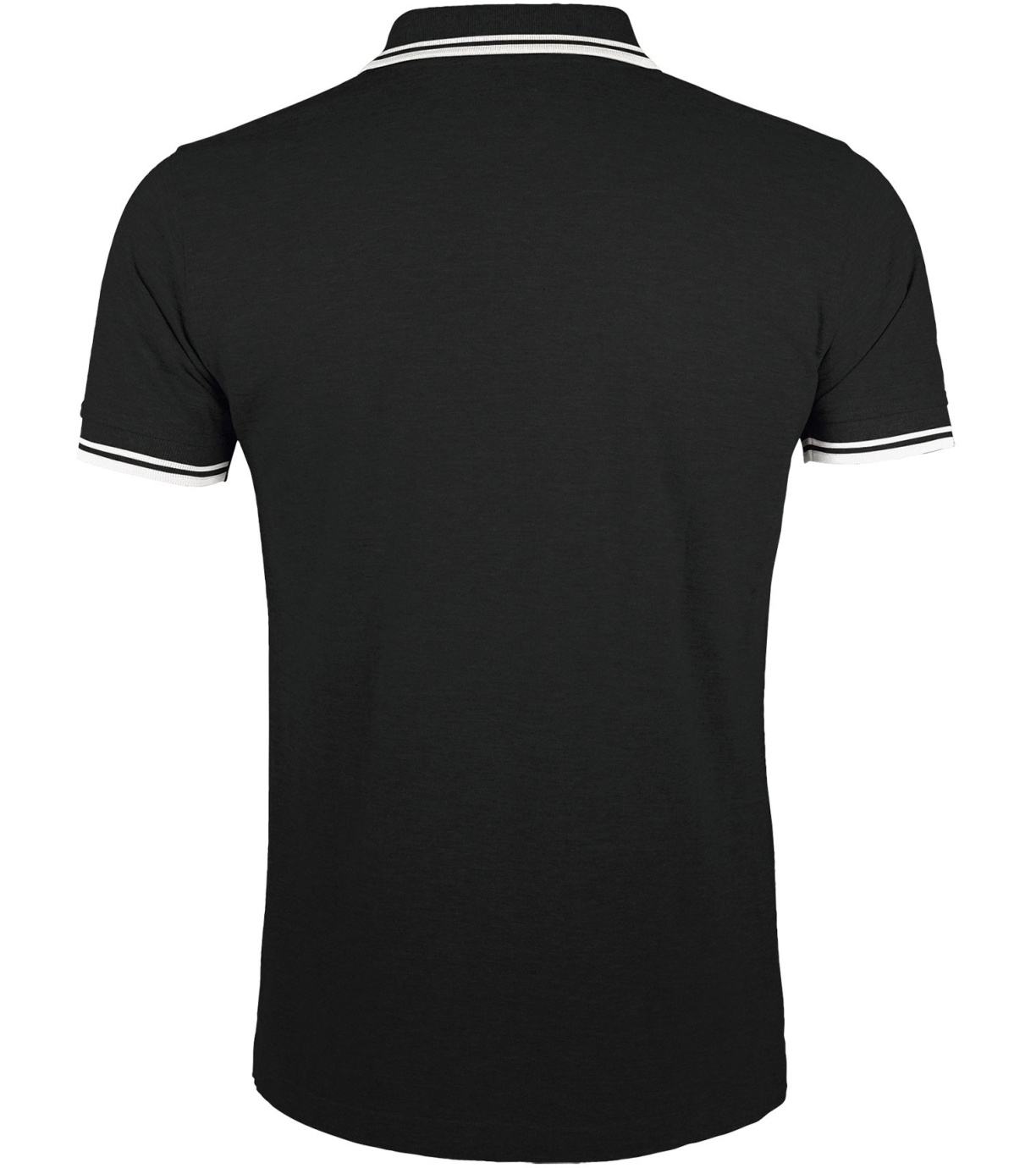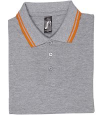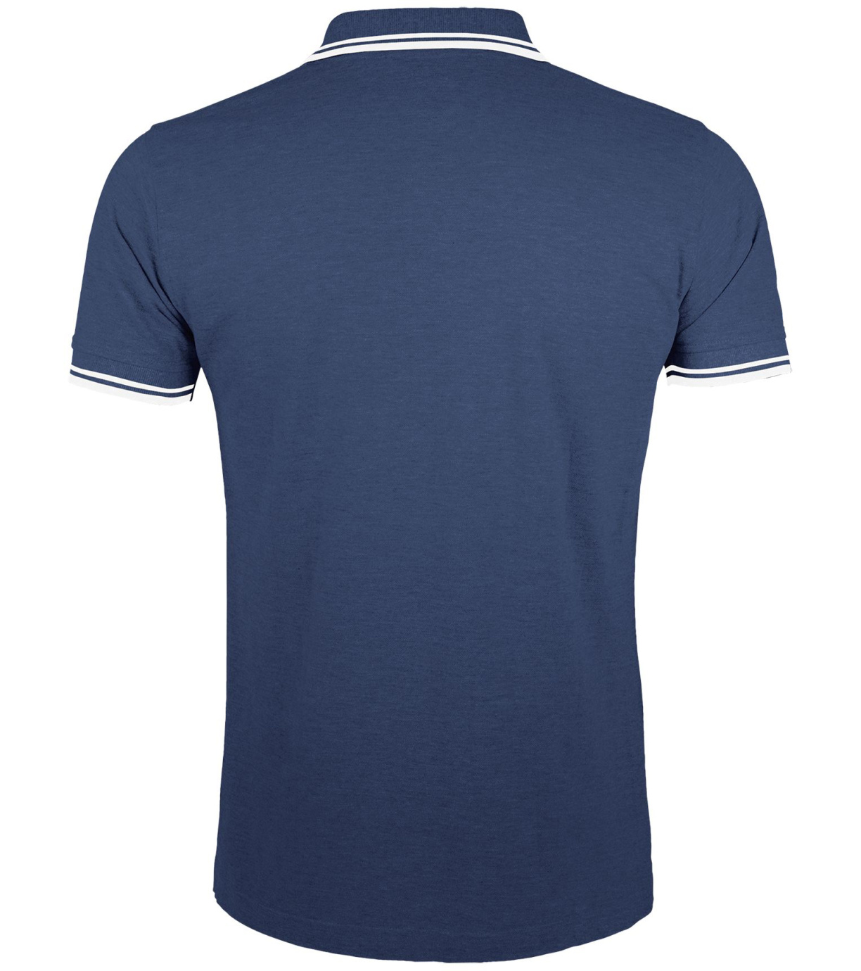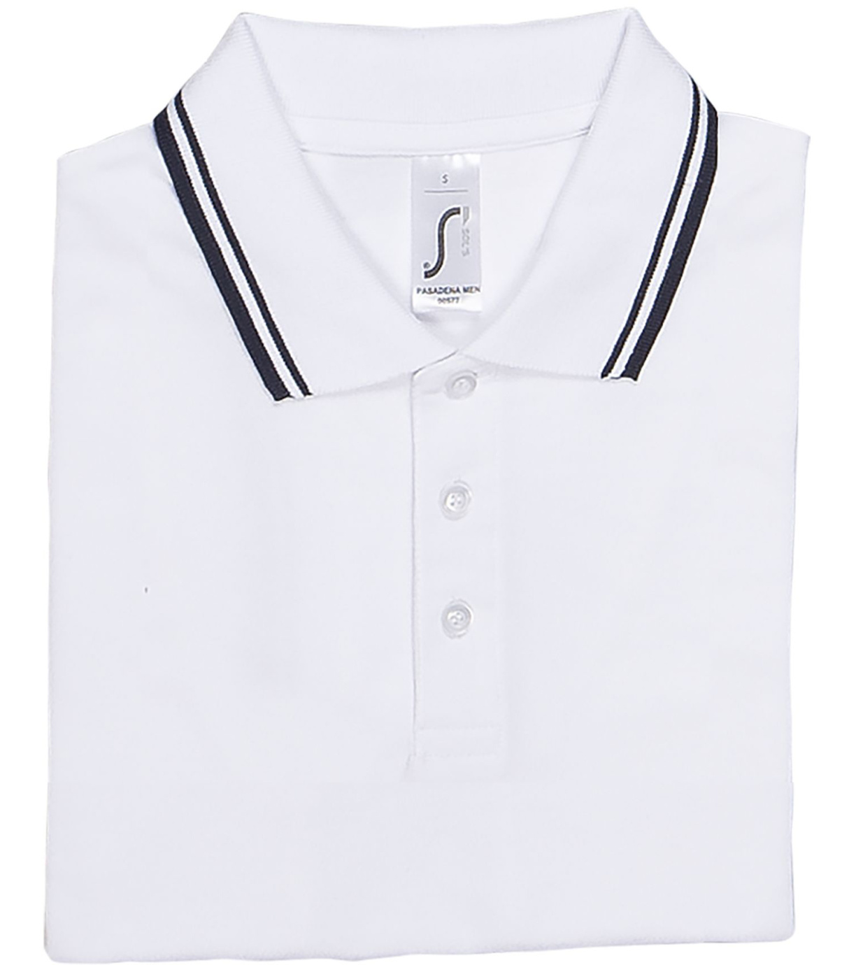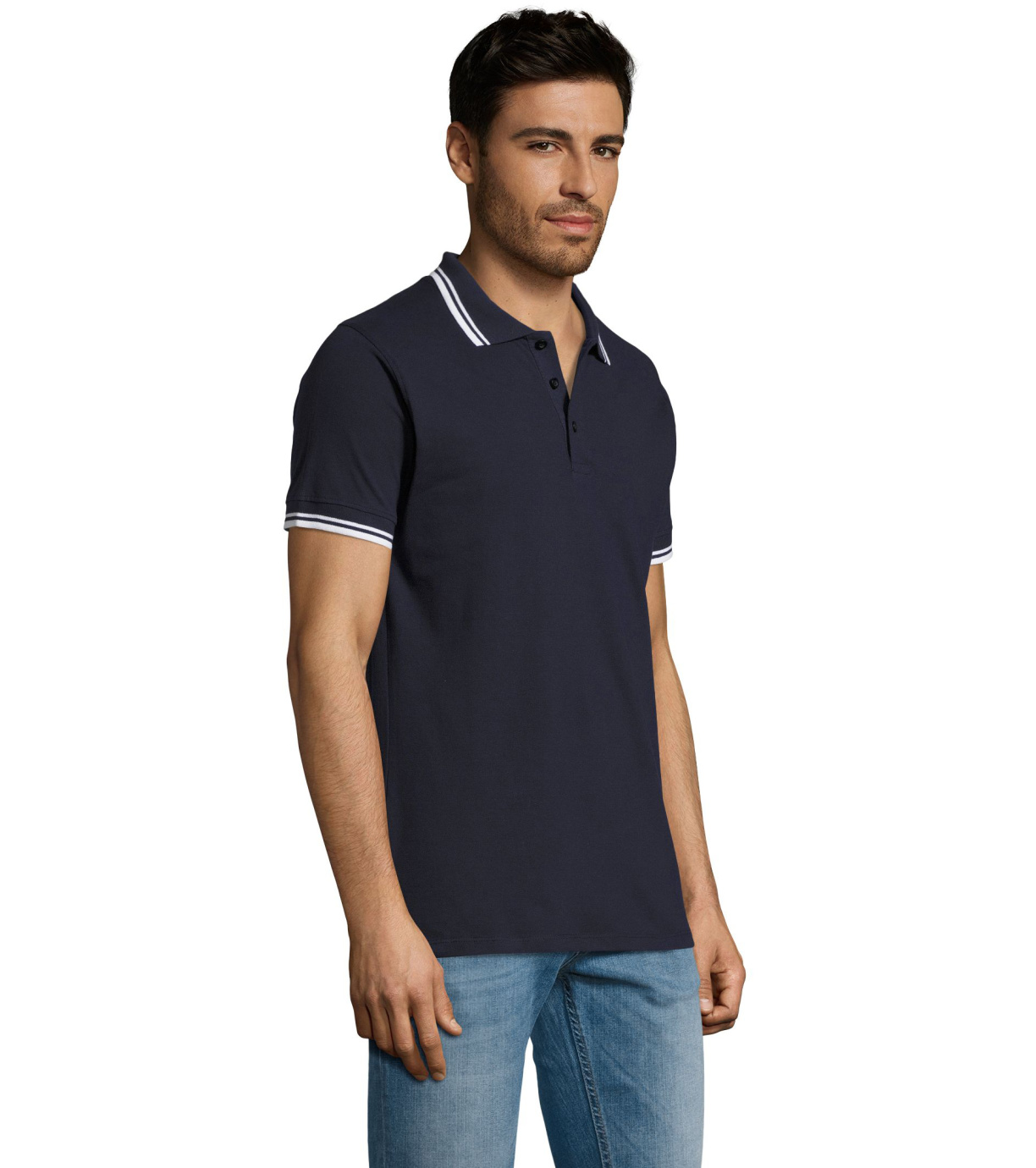 Krátké rukávy. Kontrastní pruhy na límci a manžetách. Zapínání na 3 knoflíky. Zesilující páska na krku. Žebrované zakončení límce i rukávů 1x1. Vypasovaný střih. Menší rozparek na bocích ve spodní části. Náhradní knoflík na vnitřním švu.