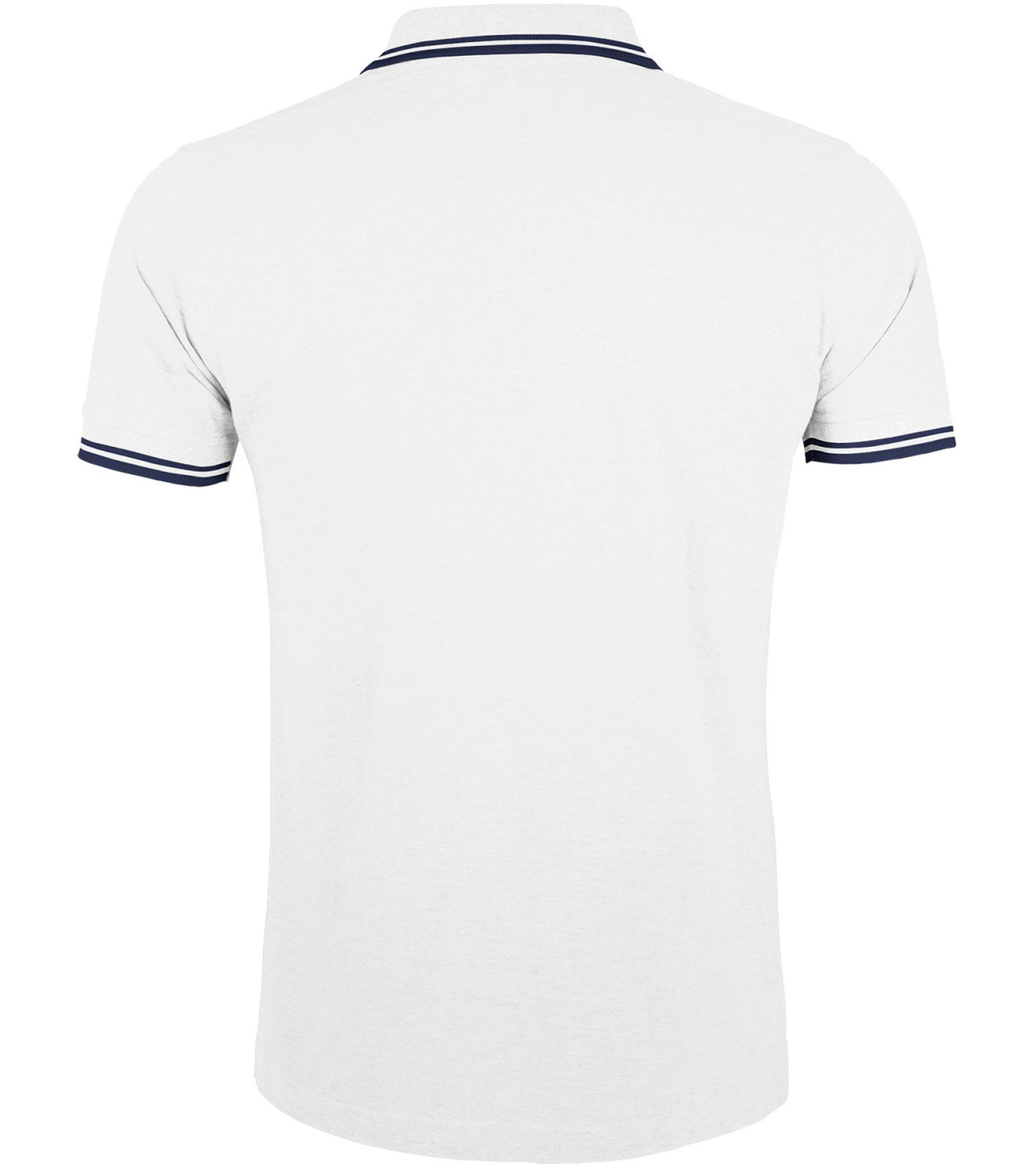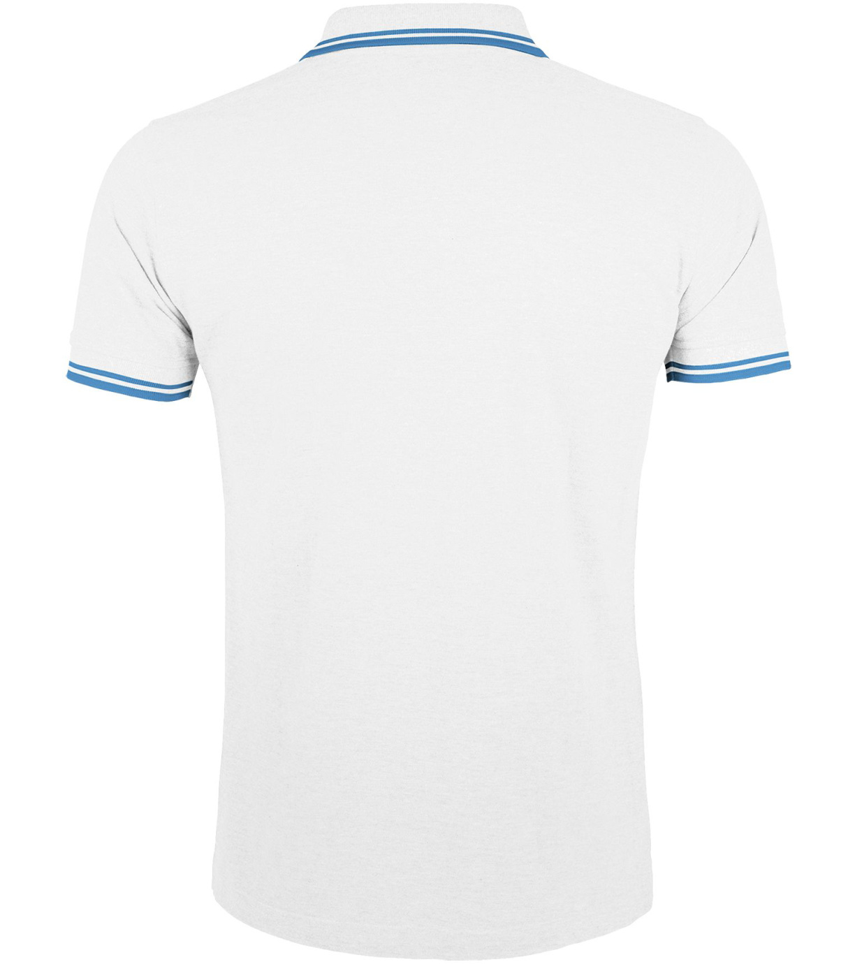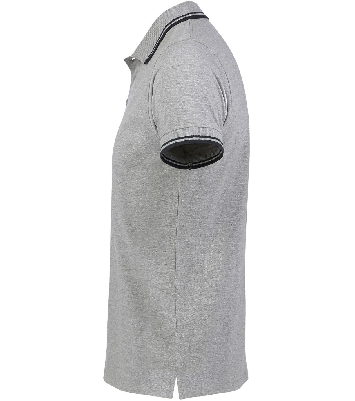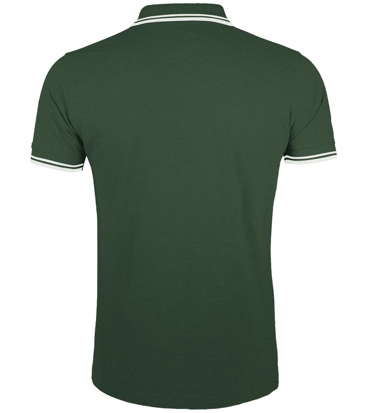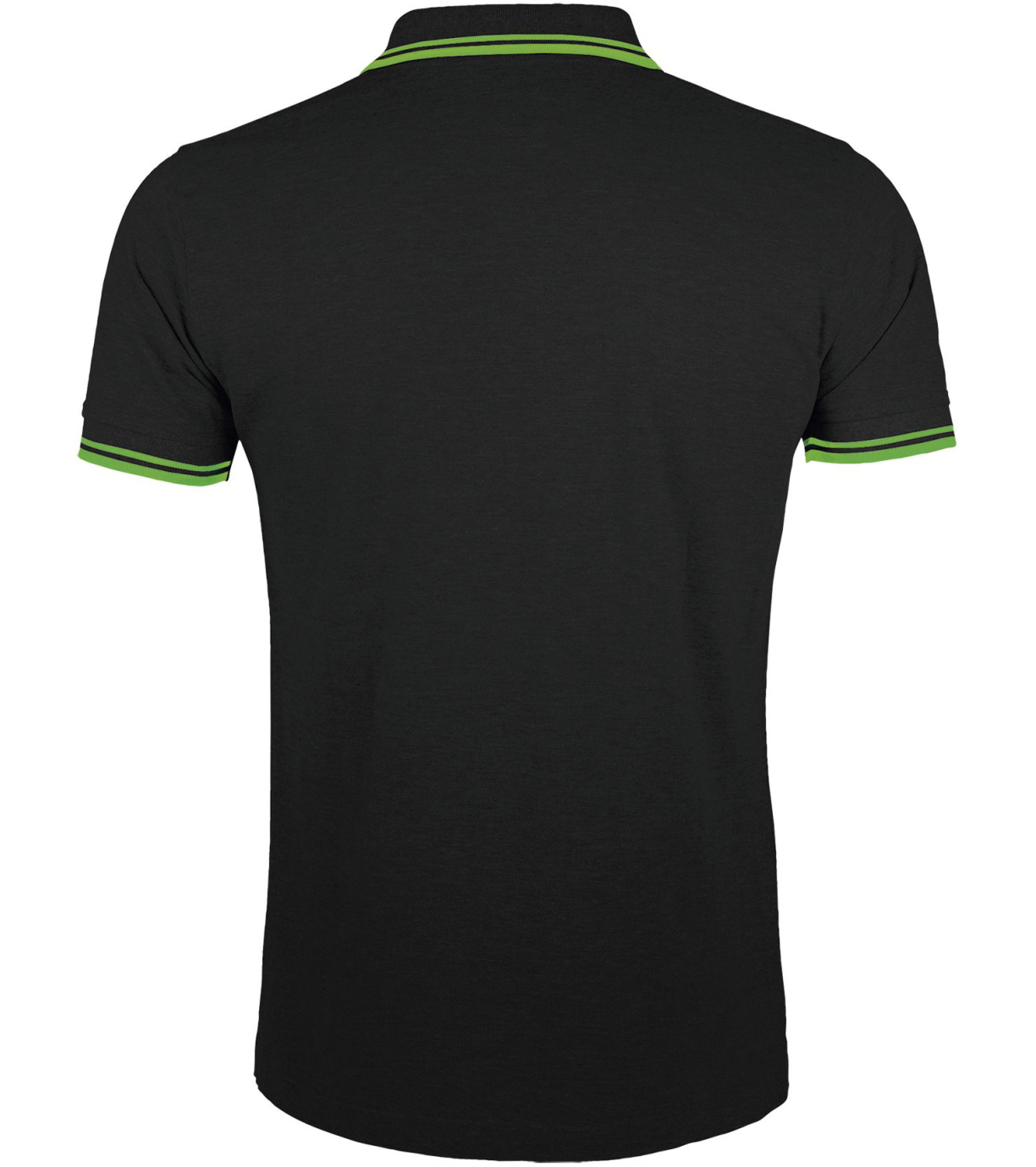 Krátké rukávy. Kontrastní pruhy na límci a manžetách. Zapínání na 3 knoflíky. Zesilující páska na krku. Žebrované zakončení límce i rukávů 1x1. Vypasovaný střih. Menší rozparek na bocích ve spodní části. Náhradní knoflík na vnitřním švu.