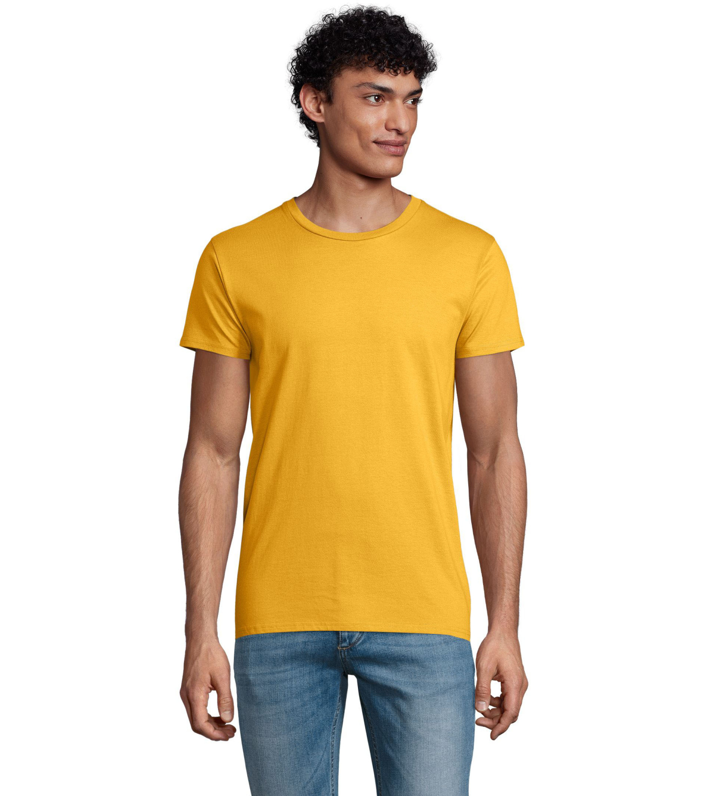 Pánské triko vyrobené z ekologicky pěstované bavlny s kulatým výstřihem. Přirozená povrchová úprava pro měkčí a hladší pocit společně s vypasovaným střihem předurčují triko k pohodlnému nošení. Bavlněný žebrovaný límec.