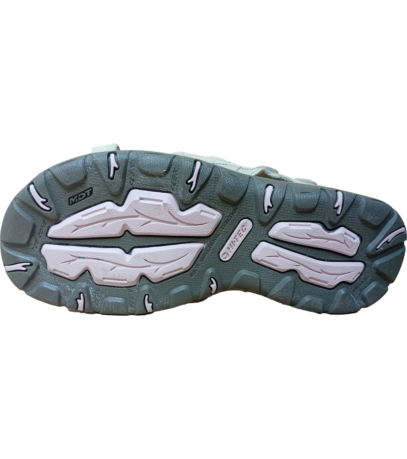 Dámské sandály Hi-Tec Waimea Falls nabízejí pohodlnou a stabilní chůzi díky technologii MDT (Multi Directional Traction), která zajišťuje spolehlivý záběr na různých površích. Zesílená Toe Zone chrání prsty, zatímco propracovaný vzor podrážky s directional traction podporuje jistý krok i v náročnějším terénu. Lehké, prodyšné a ideální na léto, turistiku i každodenní nošení.