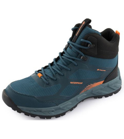 Pánská outdoorová obuv Alpine Pro Lopek je ideální volbou pro turistiku a další outdoorové aktivity. Svršek obuvi je odolný proti vlhkosti, což zajišťuje ochranu v různých povětrnostních podmínkách. Kotníkové provedení s pevnými tkanicemi a kovovými nýty poskytuje spolehlivou fixaci nohy, čímž zajišťuje stabilitu i v náročnějším terénu. Oblast paty a prstů je zpevněna pevnějším a odolnějším materiálem pro zvýšenou ochranu a trvanlivost. Na patě se nachází praktické poutko, které usnadňuje obouvání. Vnitřní část obuvi je vyrobena z příjemného textilního materiálu, který poskytuje pohodlí i při delším nošení. Mezipodešev z EVA pěny účinně tlumí nárazy, což zvyšuje komfort při chůzi. Pryžová podešev je odolná proti okopům, pevná a nabízí výbornou trakci na různých površích, což zajišťuje jistý krok i v náročném terénu.
