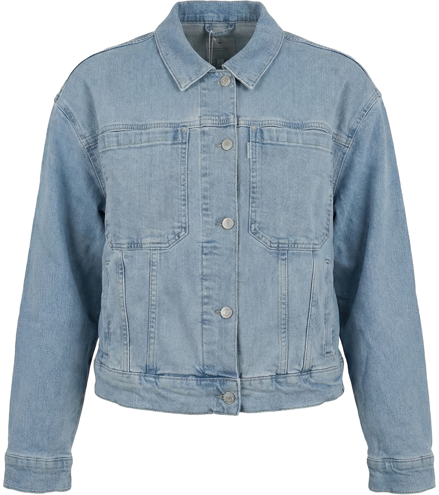 Stylová dámská džínová bunda v klasickém světle modrém odstínu je nepostradatelným kouskem do každého šatníku. Má zapínání na knoflíky, dvě náprsní kapsy a dvě boční kapsy. Lehký, pohodlný materiál a nadčasový střih zaručují univerzální využití - skvěle se hodí k šatům, sukni i kalhotám. Ideální pro jarní a letní sezónu.