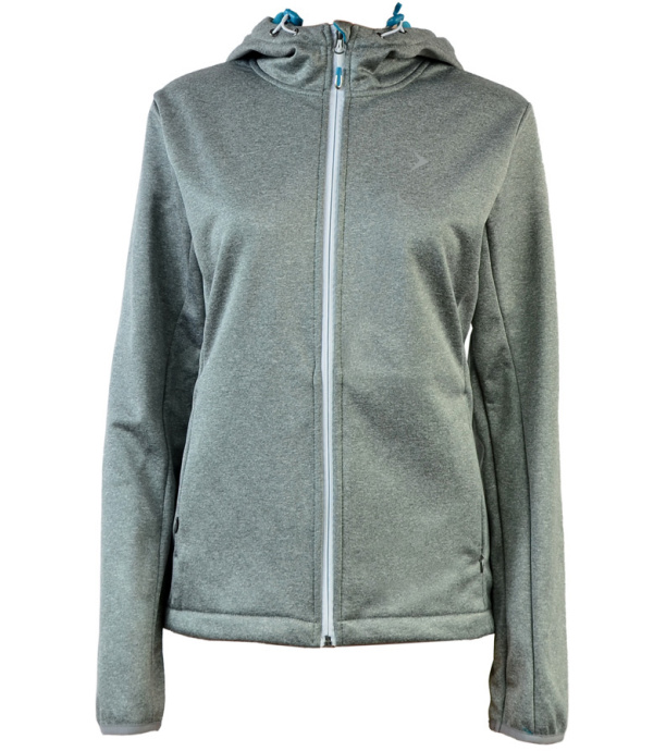 Dámská softshellová bunda značky Outhorn je určena především pro sportovní aktivity, jako je trekking, jogging a jízda na kole. Model správně odvádí vlhkost ven, zároveň chrání před větrem. Impregnace materiálu vrstvou DWR poskytuje ochranu proti mírnému dešti. Přiléhavý střih neomezuje pohyb během aktivity. Vnitřek je zateplený fleecem. Bunda je vybavena manžetami a stahováním dole i u kapuce, což zabraňuje úniku tepla. Má také dvě kapsy na zip.