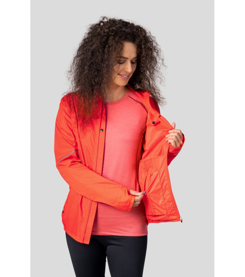 Hannah Miley je lehká sbalitelná bunda pro milovníky aktivního sportu, jako je cyklistika nebo běh. Vyvinutá je jako záložní bunda, poskytují ochranu před náhlým deštěm. Je vyrobena z nepromokavého, větruvzdorného materiálu a dá se jednoduše sbalit do vlastní kapsy. Má kapuci staženou do gumy, stejně jako spodní okraj a rukávy, které jsou navíc anatomicky tvarované a na konci mají otvor na palec. Bunda má několik kapes – dvě hlavní a jednu vnitřní kapsu na zip, která slouží jako transportní obal. Pohodlný střih Regular neomezuje v pohybu. Podlepené švy zvyšují ochranu před deštěm a díky reflexním prvkům budeš skvěle vidět i při zhoršené viditelnosti. Pokud jsi aktivní žena a miluješ pohyb v přírodě, s touto bundou neuděláš krok vedle. Nepromokavý materiál (3 000 mm/3 000 g/m2/24 h).