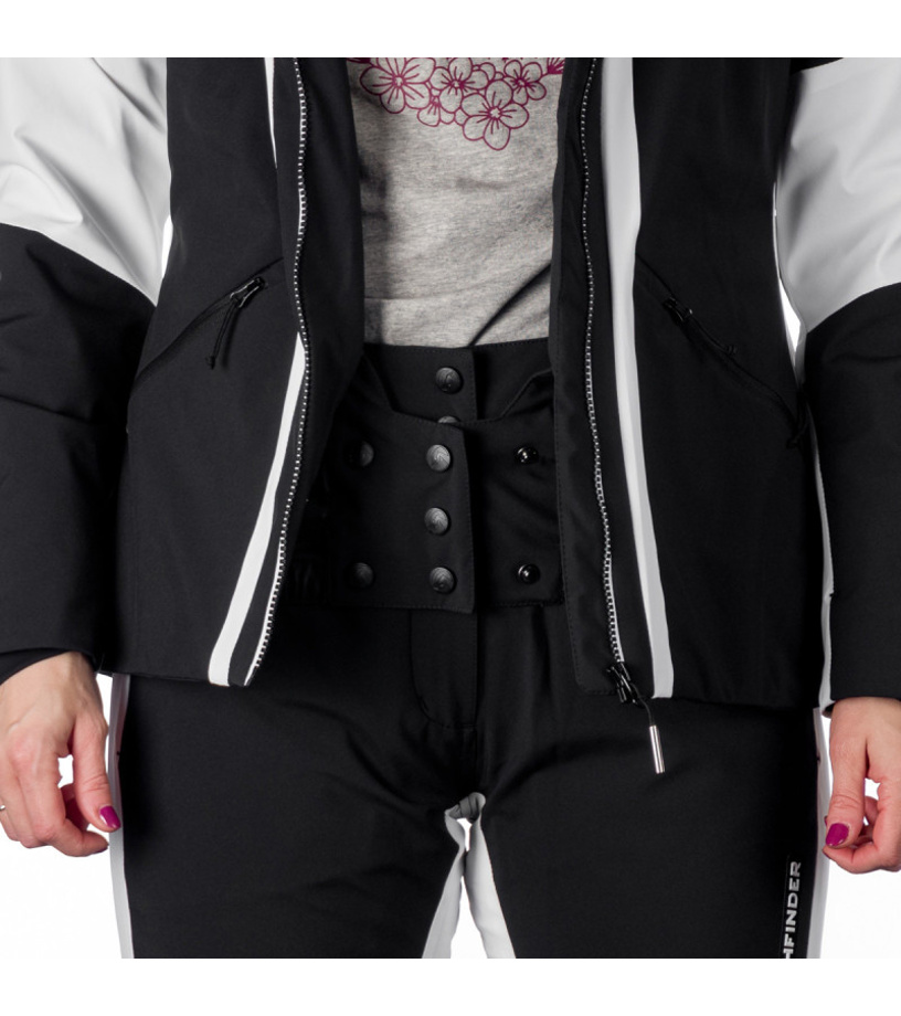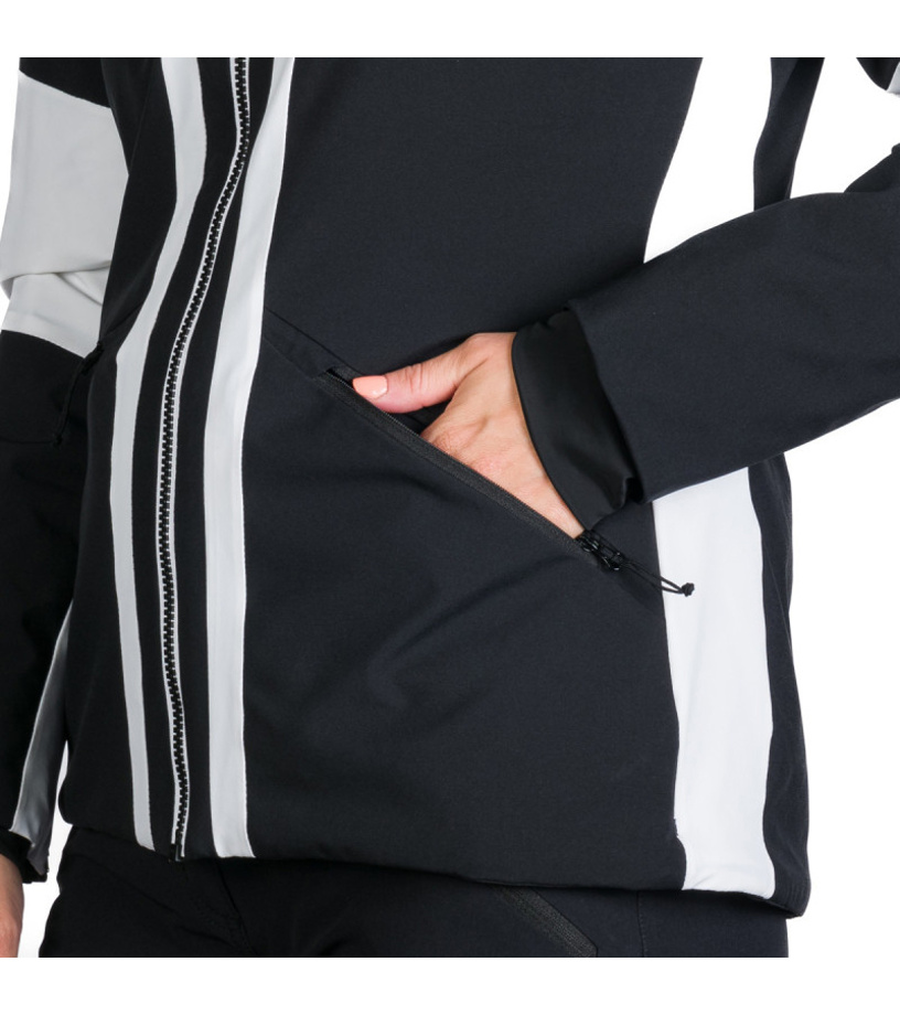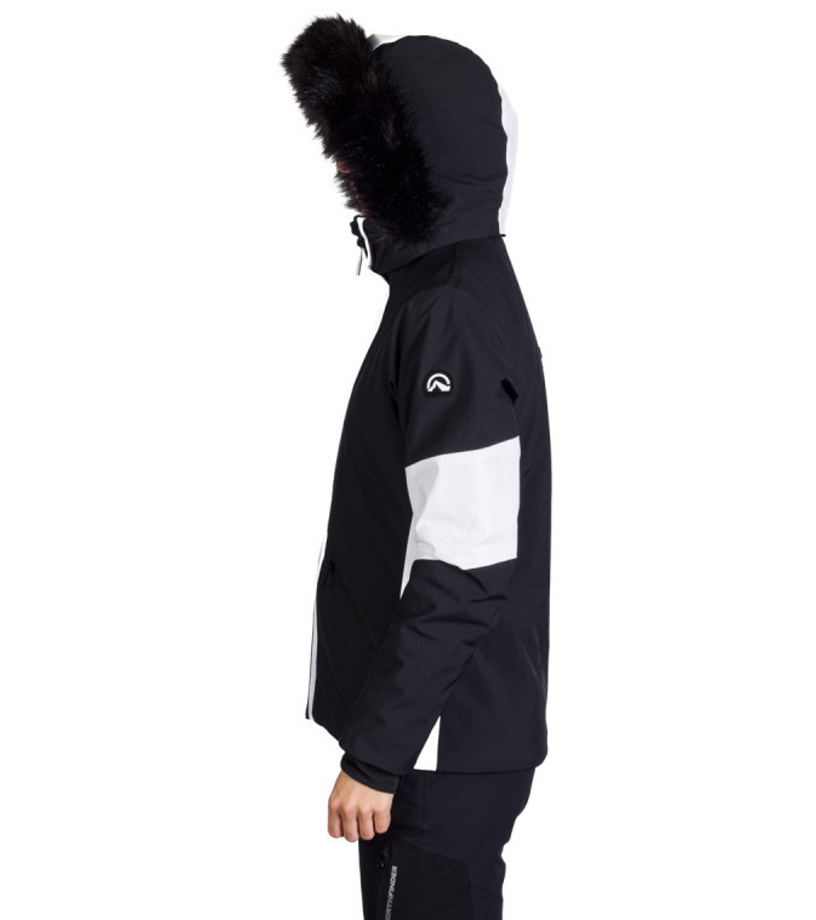 Lyžařská softshellová zateplená bunda je ideálním výběrem pro všechny lyžařky, které hledají kombinaci komfortu, funkčnosti a stylu. Bunda je vyrobena z 2-vrstvého softshellu, který je nejen elastický ve 4 směrech, ale také nabízí voděodolnost a větruodolnost s hodnotami 5 000 mm H₂O / 5 000 g/m²/24 h. Materiál byl navíc ošetřen ekologickou vodoodpudivou WR úpravou (PFC free). Jedinečný je výběr materiálu v oblasti loktů, po bocích a vnitřních stranách ramen. Tyto části jsou vyrobeny z vysoce strečového materiálu (10K/10K), který zvyšuje flexibilitu bundy a zajišťuje maximální komfort při pohybu. Komfort při nošení podporují předtvarované rukávy s vnitřní vsadkou z lycry, nastavitelný pas a možnost regulace spodního okraje stahováním. Bunda je vybavena dvojicí praktických bočních kapes na zip, kapsou na rukávu na skipass a vnitřní hrudní kapsou na zip. Další vnitřní kapsa je určena k uložení lyžařských brýlí. Funkci bundy dokonale doplňuje odnímatelná 3D kapuce s odnímatelnou kožešinou. Bunda je připravena na zimní počasí, sněžení a vítr, a to díky léze proti profouknutí pod zipem a sněhovému pásu, který chrání před vniknutím sněhu dovnitř bundy. Praktickým doplňkem je také otvor/držák na sluchátka, díky kterému si můžete vychutnat svoji oblíbenou hudbu.