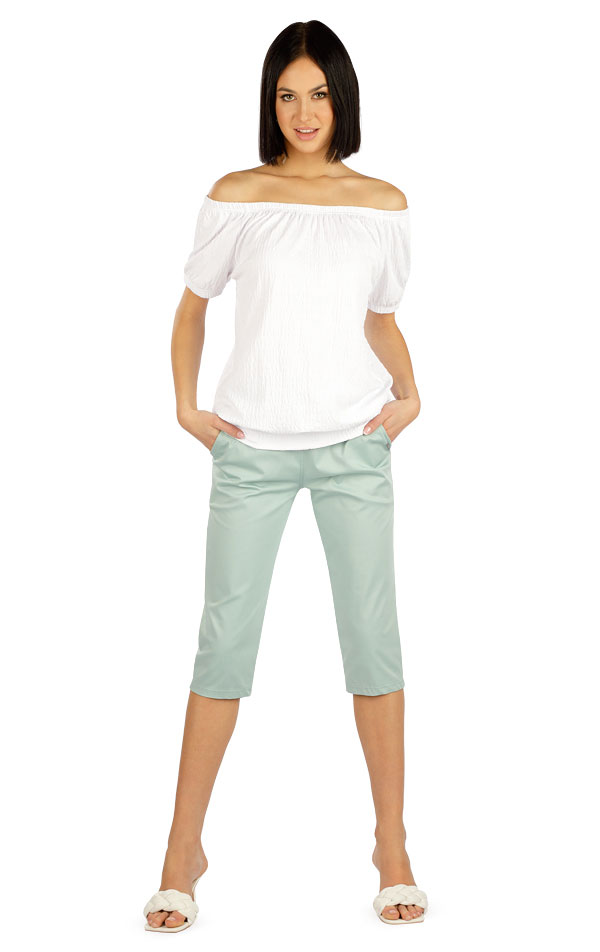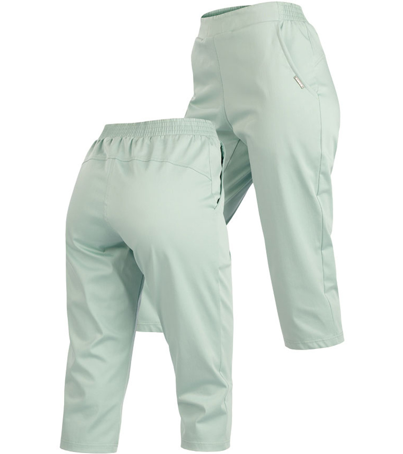 Dámské kalhoty v 3/4 délce. Vyšší sed s elastickým pasem a bočními kapsami. Lichotivý střih s členícím švem na zadním díle a délkou pod kolena. Materiál příjemný na omak zaručuje maximální komfort při nošení.