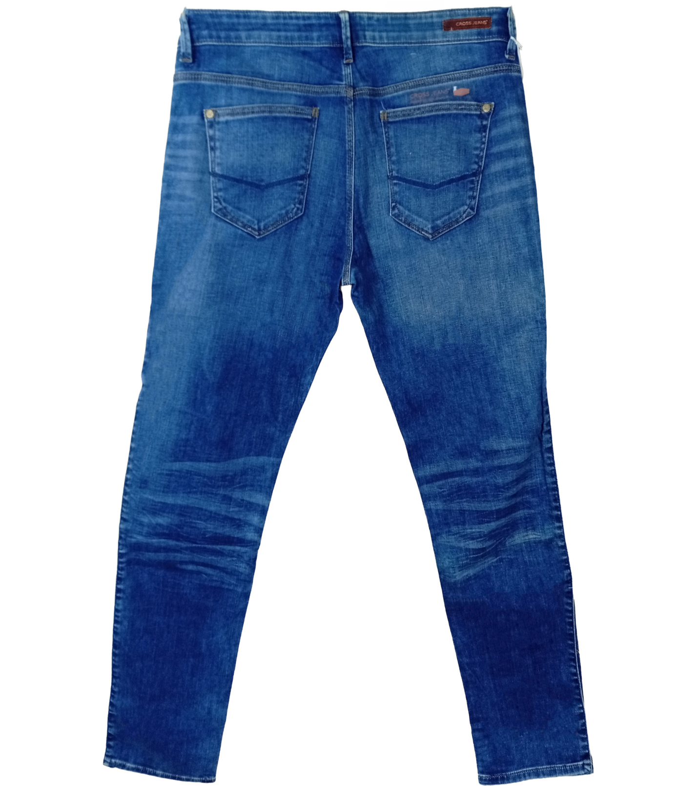 Dámské elegantní džíny, vyrobené z kvalitního denimového materiálu, který kombinuje pružnost a komfort díky příměsi elastanu. Mají úzké, těsné nohavice (skinny fit), středně vysoký pas a klasický modrý odstín s decentním vyblednutím pro stylový vzhled. Ideální volba pro každodenní nošení, která podtrhne siluetu a snadno se kombinuje s teniskami i s podpatky.