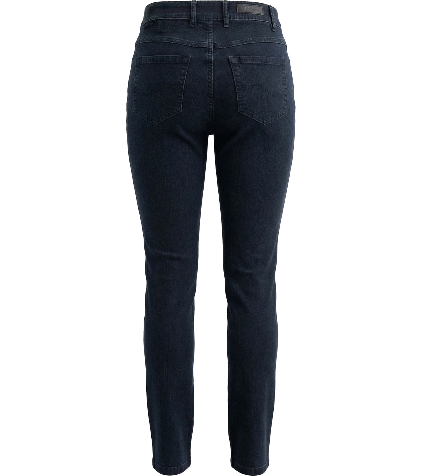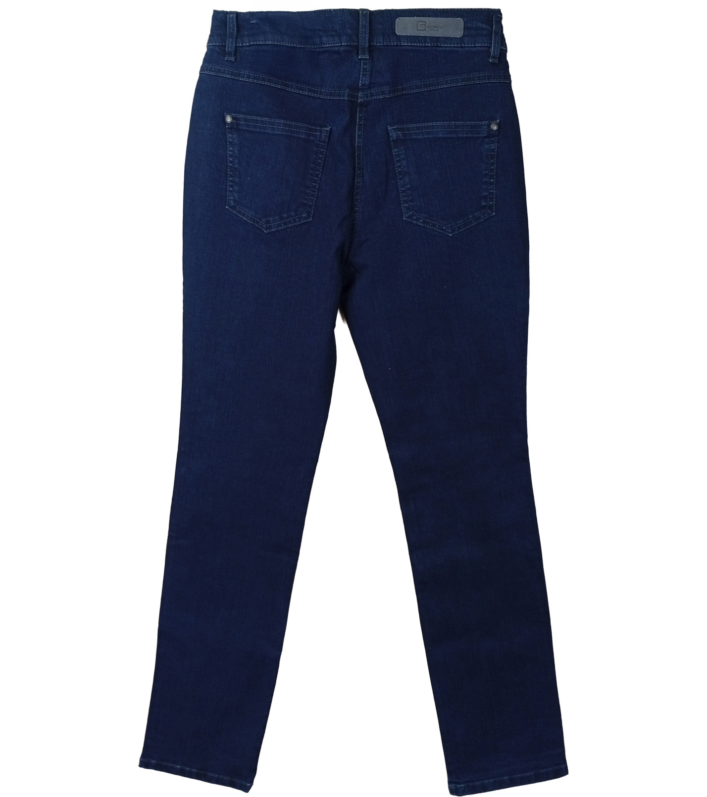 Dámské džíny Gerke mají moderní střih s úzkými nohavicemi a středně vysokým pasem. Jsou vyrobeny z elastického denimu, který zajišťuje pohodlí i při celodenním nošení a zároveň krásně kopíruje postavu. Kalhoty mají klasické zapínání na zip a knoflík, poutka na pásek a pět funkčních kapes. Zadní kapsy jsou řešeny jednoduše s decentním prošitím. Díky elegantnímu tmavému odstínu se snadno kombinují a hodí se jak pro volný čas, tak i do městských outfitů.