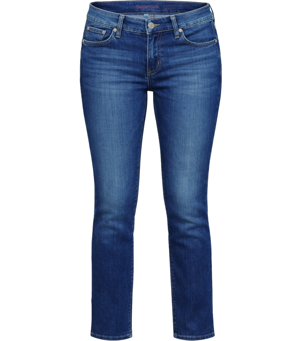 Dámské džíny Mustang z kolekce Gina v oblíbeném Slim Fit střihu s nižším pasem a rovnými nohavicemi. Modrý denim s jemným vyšisováním na stehnech působí moderně a opticky prodlužuje nohy. Díky příměsi elastanu se džíny pohodlně nosí a dobře padnou. Ideální univerzální model pro každodenní kombinaci s tričkem, svetrem i halenkou.
