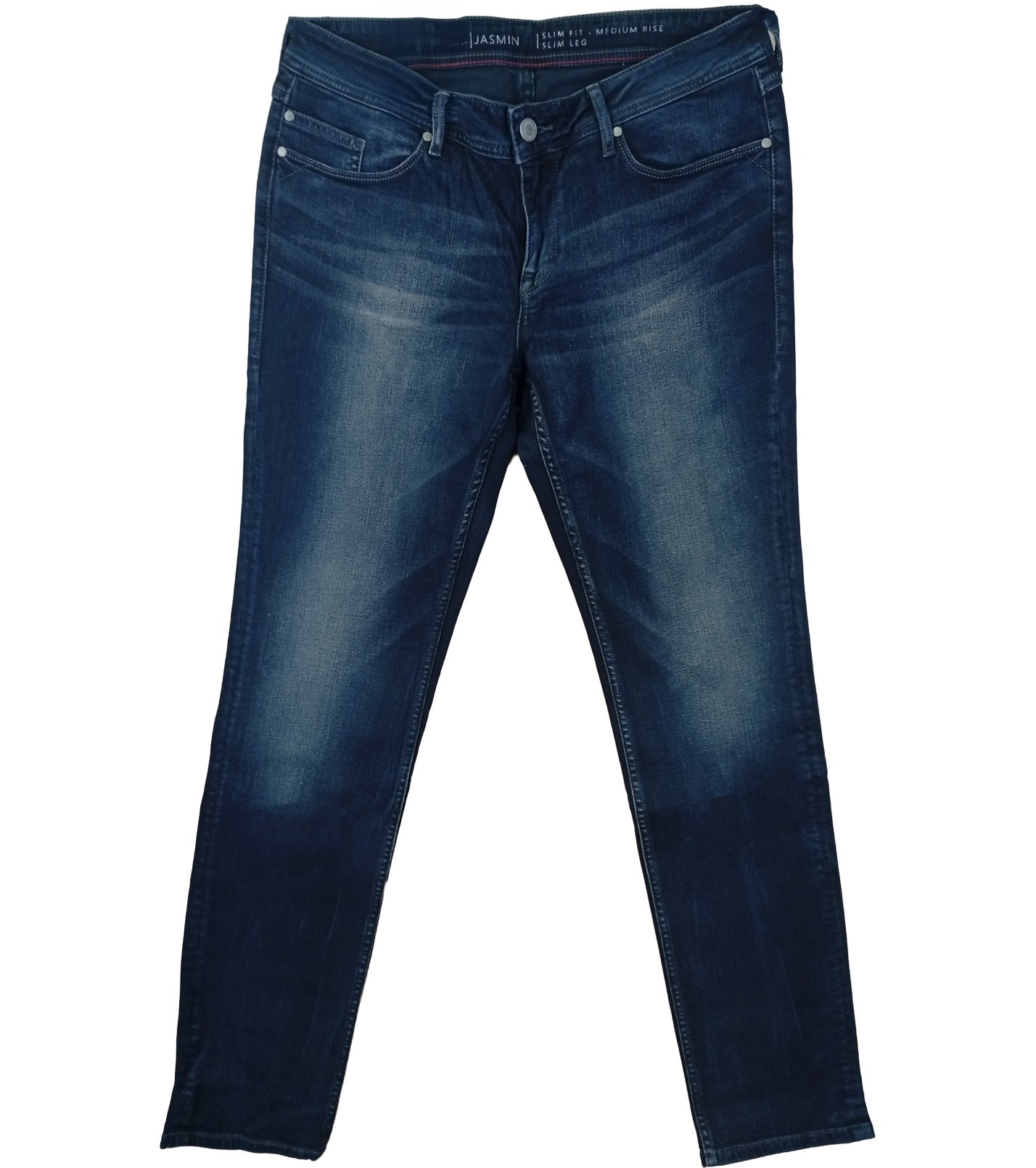 Dámské džíny Mustang z kolekce Jasmin v moderním Slim Fit střihu se středním pasem a úzkými nohavicemi. Tmavě modrý denim s efektním vyšisováním na stehnech působí trendy a opticky zeštíhluje postavu. Díky elastickému materiálu kalhoty perfektně padnou a zůstávají pohodlné po celý den. Stylový model, který se snadno kombinuje s tričkem, svetrem i elegantní halenkou.