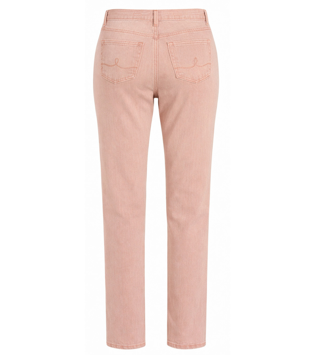 Růžové džíny v moderním, lehce zúženém střihu, které působí svěže a žensky. Jemné vyšisování dodává modelu měkký, přirozený vzhled a zvýrazňuje barvu. Kvalitní denim zajišťuje pohodlí při nošení i dobré držení tvaru. Klasické zapínání na knoflík a zip, pět kapes a decentní detaily podtrhují nadčasový charakter. Ideální volba pro jarní a letní casual outfity.