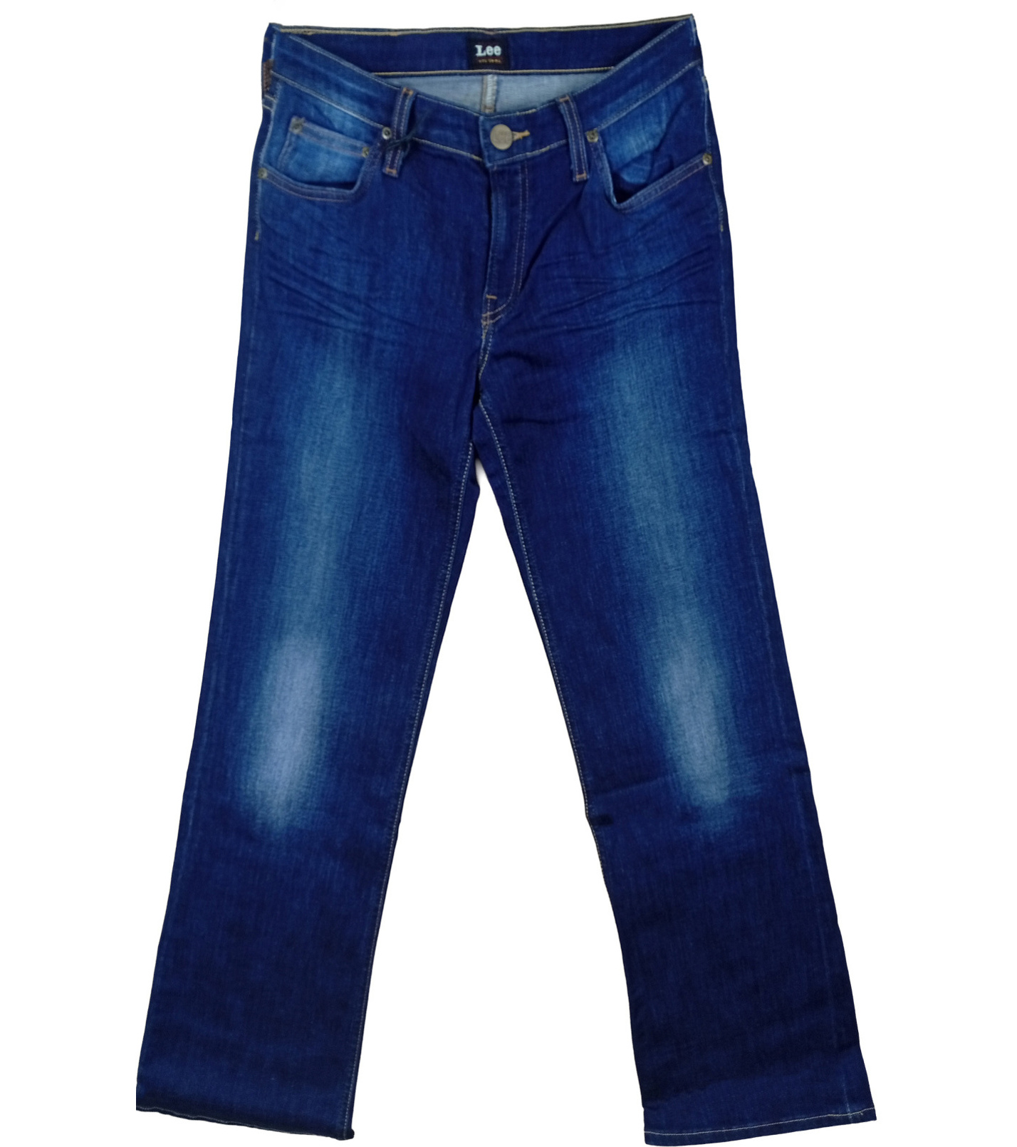 Tmavě modré džíny s jemným vyšisováním na nohavicích, které jim dodává moderní a přirozeně nošený vzhled. Klasický střih zajišťuje pohodlí a univerzální využití pro každodenní nošení. Kvalitní denim je pevný, odolný a příjemný na dotek. Džíny mají zapínání na knoflík a zip, pět kapes a kontrastní prošití, které podtrhuje jejich nadčasový styl. Vhodné pro volný čas i ležérní městské outfity.
